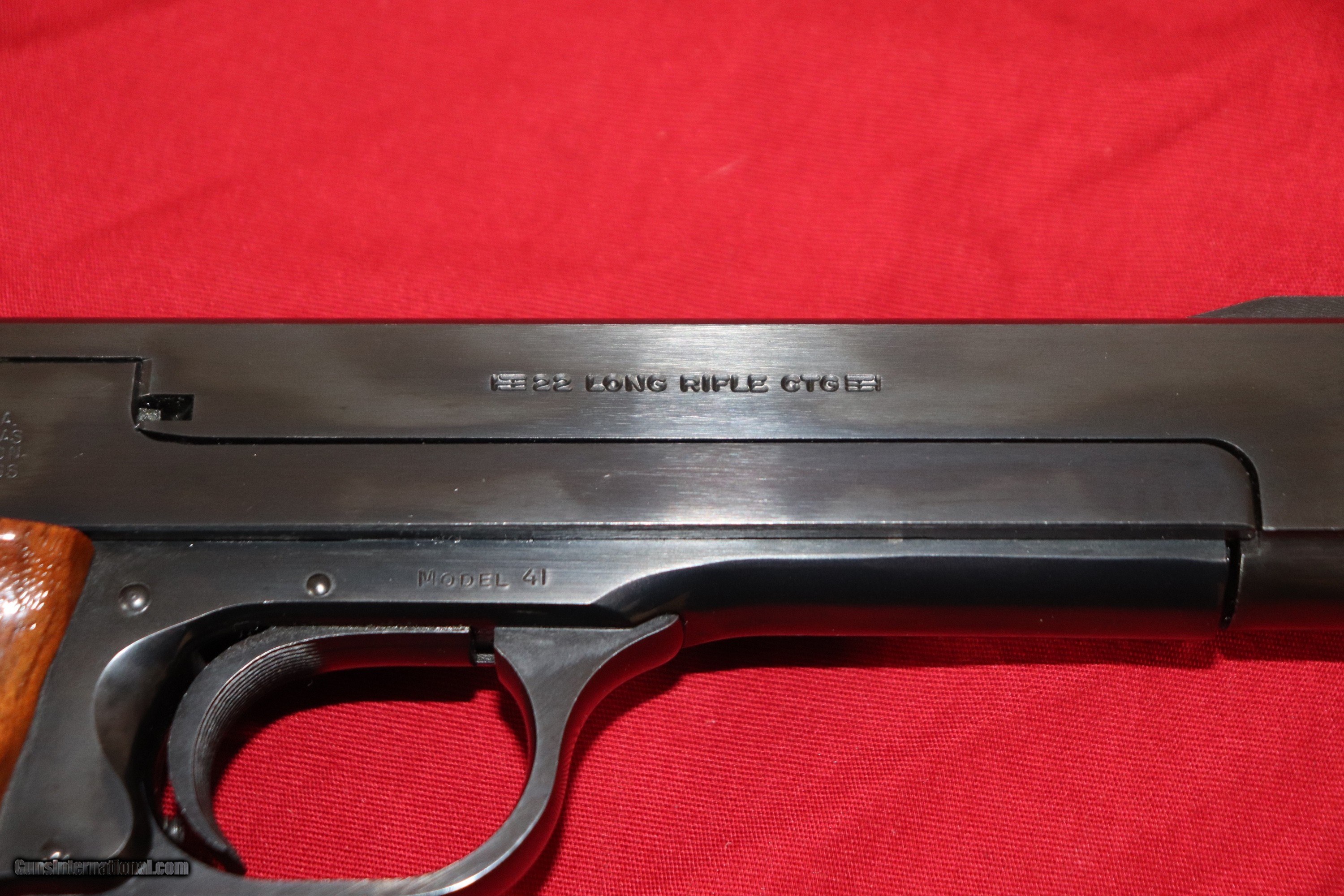 Description: Another great item from Gainesville Pawn! Up for sale is a Smith & Wesson model 41. This guns is in excellent condition with 2 factory magazines. *Please be aware that all items are sold “AS IS”. Ask questions BEFORE buying. Feel free to call us at our store (352) 339-4780 or email us at Gainesvillepawn(at)gmail(dot)com with ANY questions. We do not accept trades or offers through through Guns International We only entertain trades and offers through our store. $35 shipping and handling. Insurance extra. We only accept USPS money orders and major credit cards for payment. 3% convenience fee for credit cards. WE collect Florida state sales tax for in state sales. Please be aware that this item is for sale in our store as well as the occasional gun show so it may be sold there at any time. If you would like to see this item in person please call the shop BEFORE coming to the store due to limited shelf space in store. We will not ship the item until you have your dealer/receiving store email us a signed copy of their FFL to gainesvillepawn(at)gmail(dot)com SOLD Handgun Caliber: .22 Long Rifle Manufacturer: S & W Model: 41 Serial Number: Tad 7514 Barrel Length: 5 1/2 Condition: Excellent Metal Condition: Excellent Wood Condition: Excellent Bore Condition: Excellent |