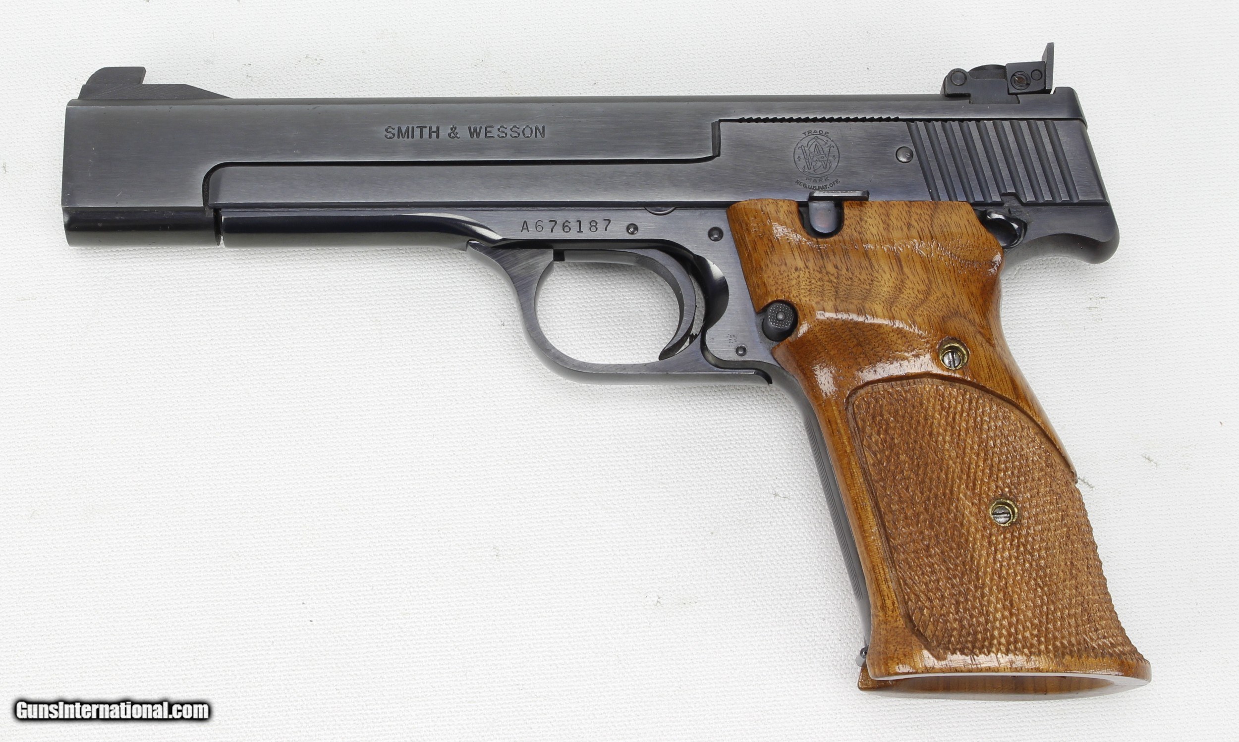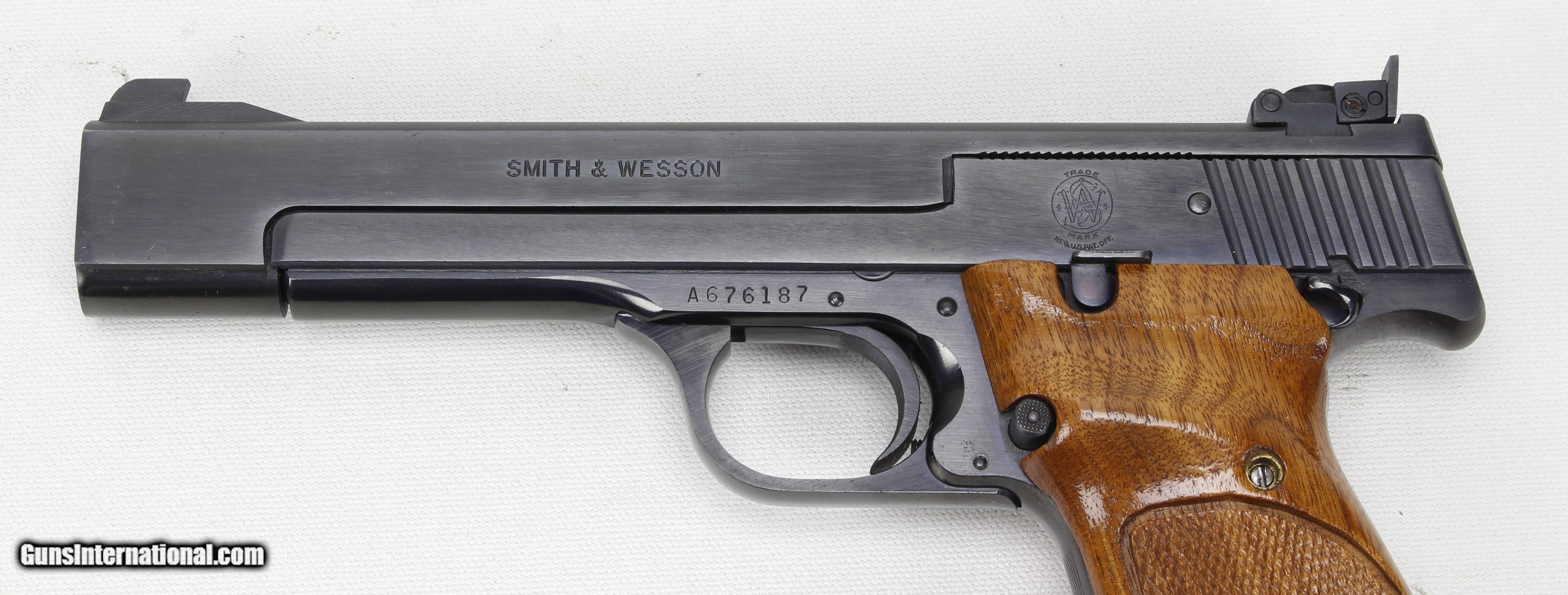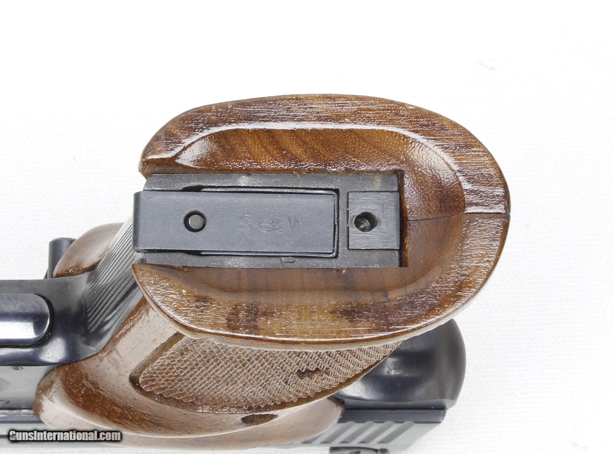 Description: S&W Model 41 in .22 LR. SN #A676187. Mfg. Mid 70's (A Series). 5 1/2" Heavy Barrel with an excellent "Like New" bore. Wood grips are also in excellent "Like New" condition. Blued metal finish is in 99%+ condition. Pistol includes 4 aftermarket 10 shot magazines. This pistol is in "Minty" condition. SOLD Manufacturer: Smith & Wesson Model: 41 Serial Number: A676187 Caliber Info: .22 LR Bore: Excellent Condition: Excellent Metal Condition: Excellent Barrels: 5 1/2" Heavy Finish: Blue |