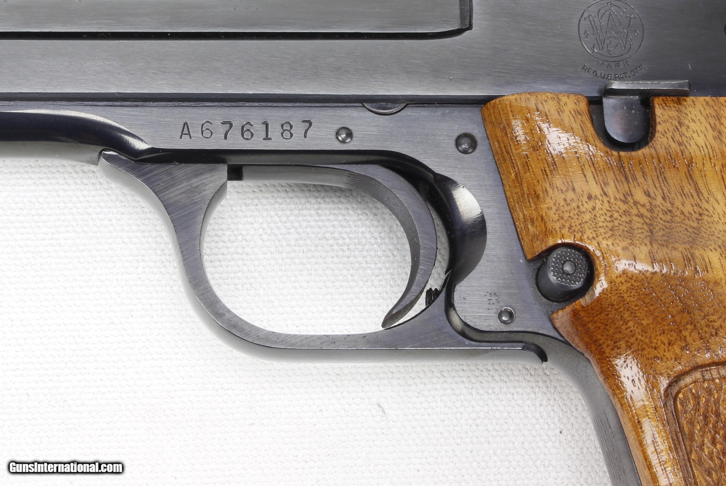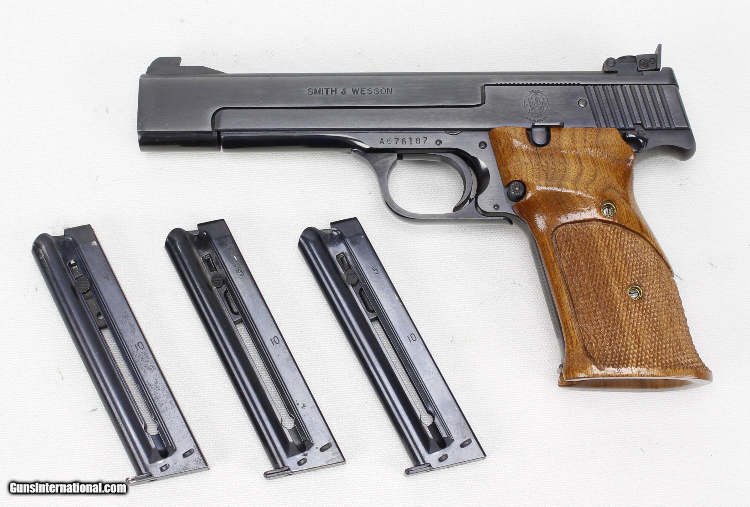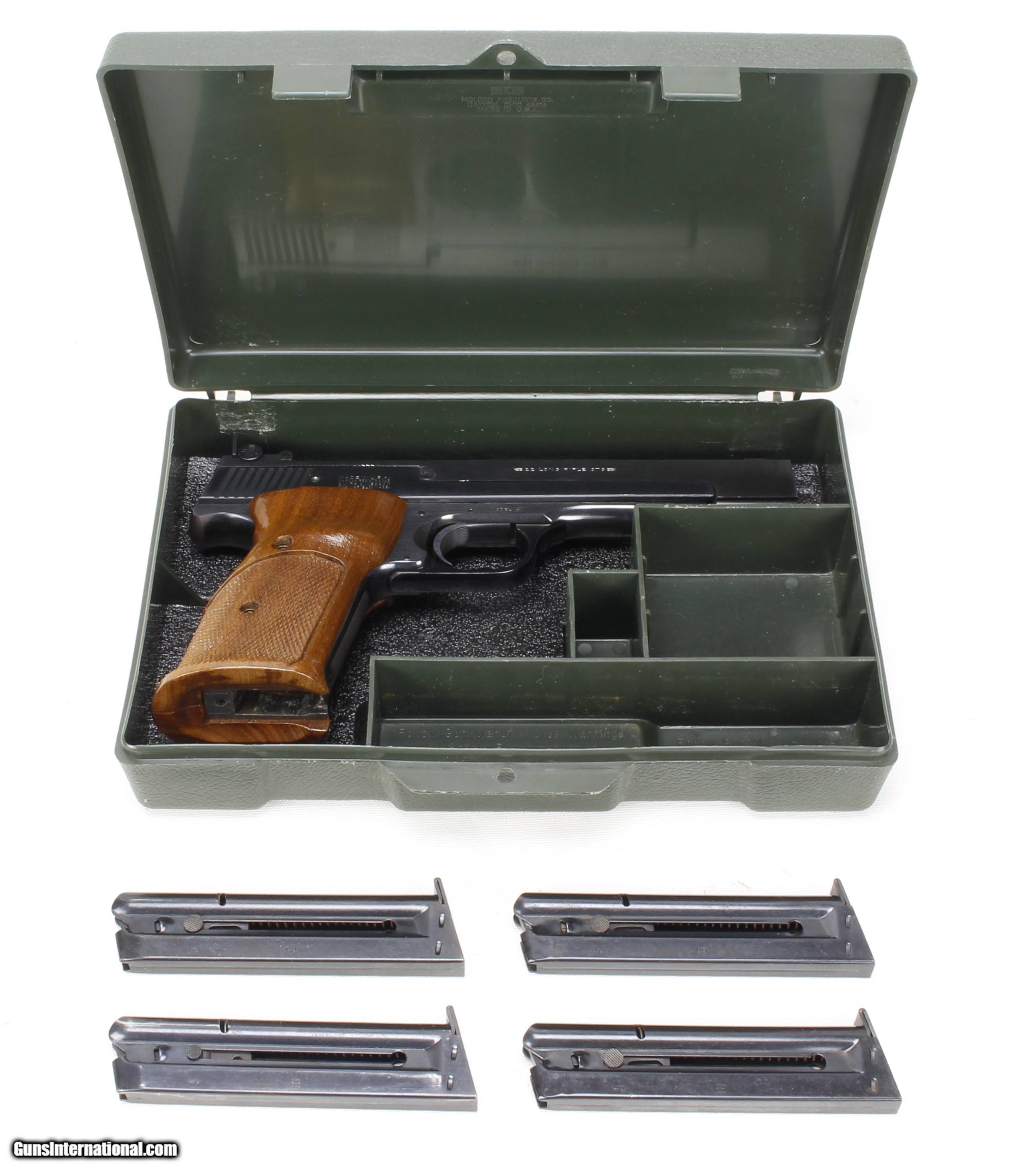 Description: S&W Model 41 in .22 LR. SN #A676187. Mfg. Mid 70's (A Series). 5 1/2" Heavy Barrel with an excellent "Like New" bore. Wood grips are also in excellent "Like New" condition. Blued metal finish is in 99%+ condition. Pistol includes 4 aftermarket 10 shot magazines. This pistol is in "Minty" condition. SOLD Manufacturer: Smith & Wesson Model: 41 Serial Number: A676187 Caliber Info: .22 LR Bore: Excellent Condition: Excellent Metal Condition: Excellent Barrels: 5 1/2" Heavy Finish: Blue |