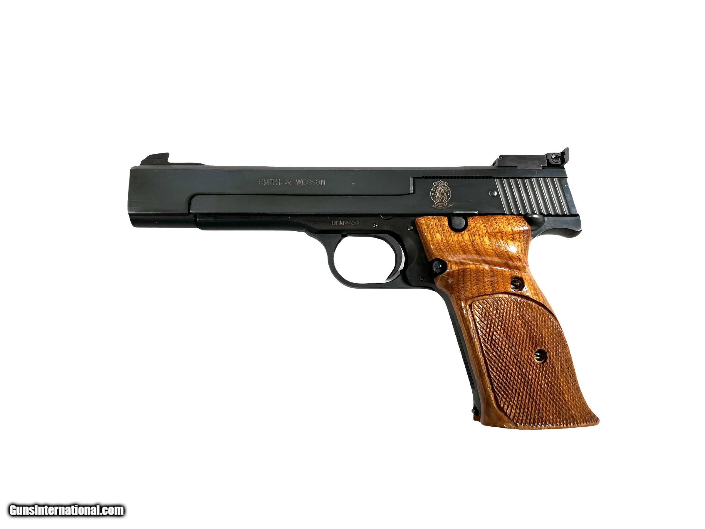 Description: S&W model 41 .22lr 5.5" barrel 2lbs 11oz Two magazines Original box and paperwork Factory Checkered target grips Excellent condition SOLD Handgun Caliber: .22 Long Rifle Condition: Excellent Bore Condition: Excellent |