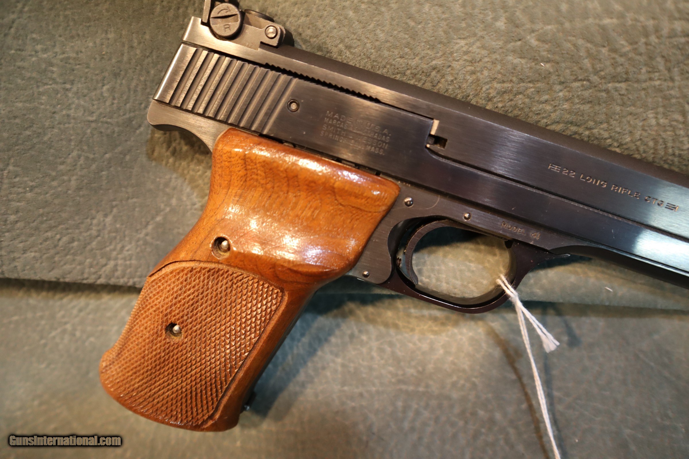 Description: S+W Model 41 22LR 5 1/2" heavy barrel,earlier model made 1978-83,excellent condition with a case and an extra magazine. GUN COLLECTIONS WANTED FOR CASH! We buy, sell, consign and trade new and used firearms.We will pay finders fees and travel for large collections. This is our 47th year in business. We offer 90 day layaways with 20% down. No return on layaways. Firearms will need to be transferred through a FFL dealer. Prices reflect a cash discount. There will be 3% added to credit card sales. We trade for gold and silver. THANK YOU! SOLD |