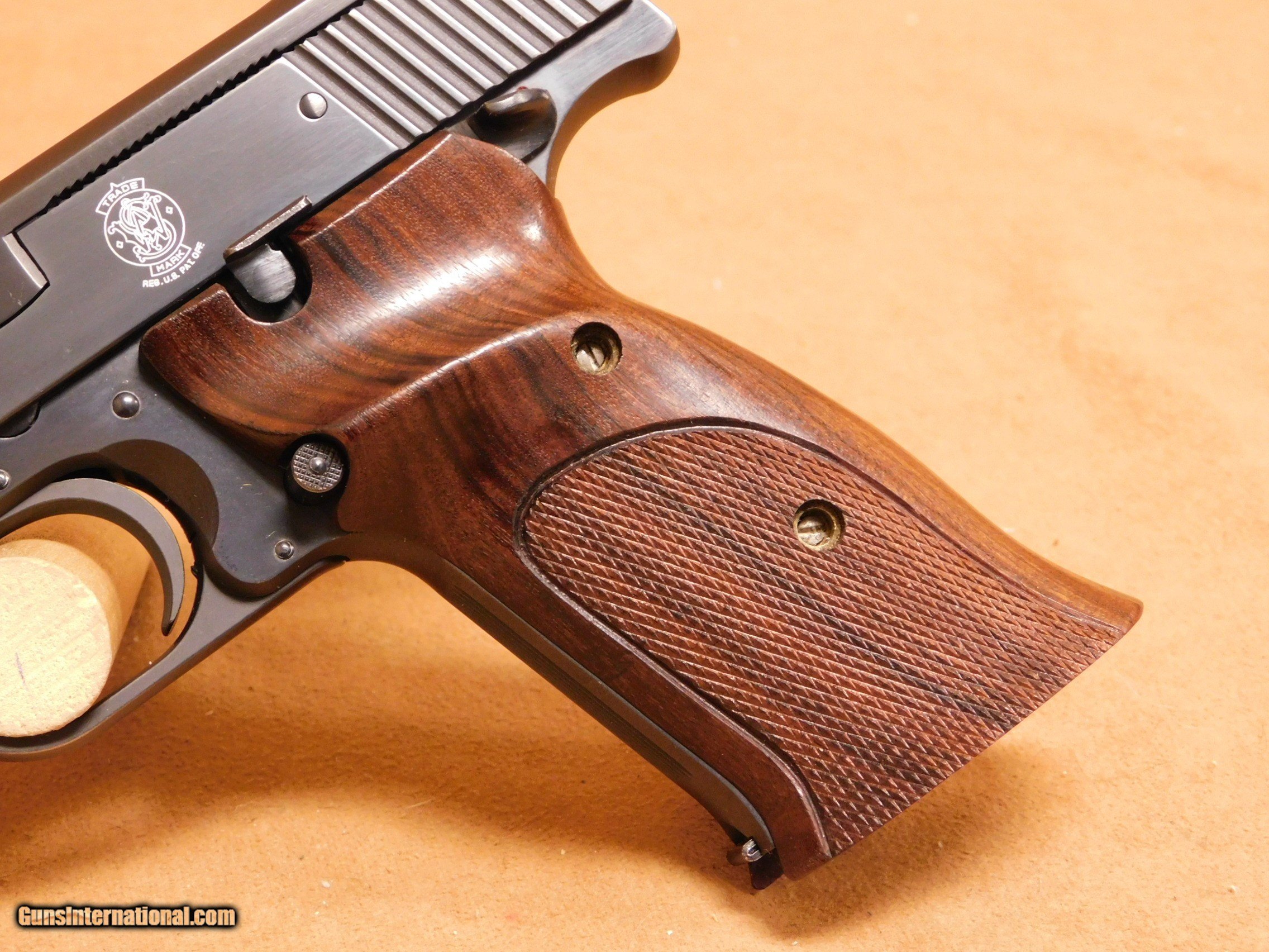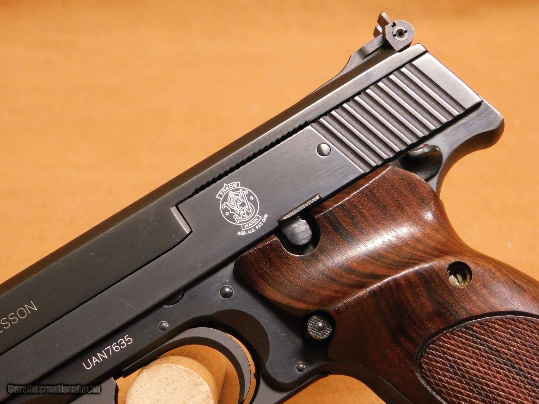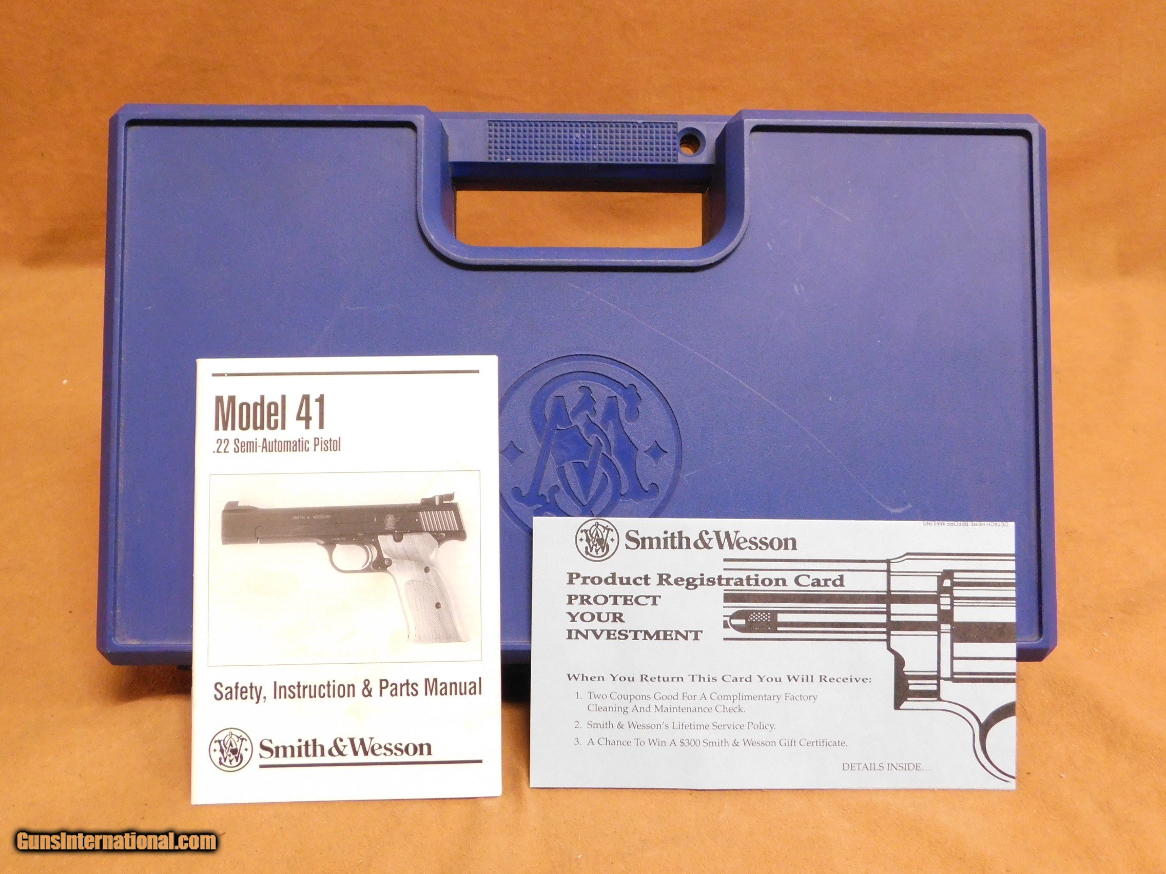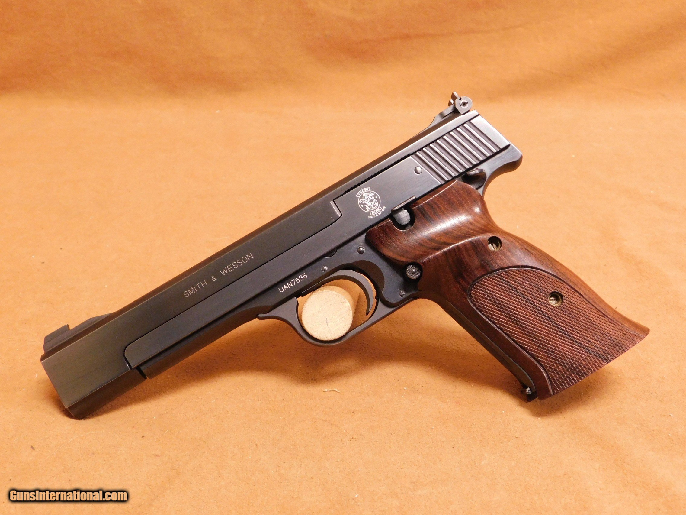 Description: This is a Smith & Wesson Model 41 with a 5.5-inch barrel and wood grips. It appears to be in about 98% condition with some handling marks and a chip on the bottom of the right grip panel. The bore is excellent. THis gun has the correct era box, but it is not numbered to the gun. All items are also available for sale in our brick & mortar store and are subject to prior sale. Think long, think wrong. Payment On firearms, we typically only accept credit cards or money orders/cashier's checks.