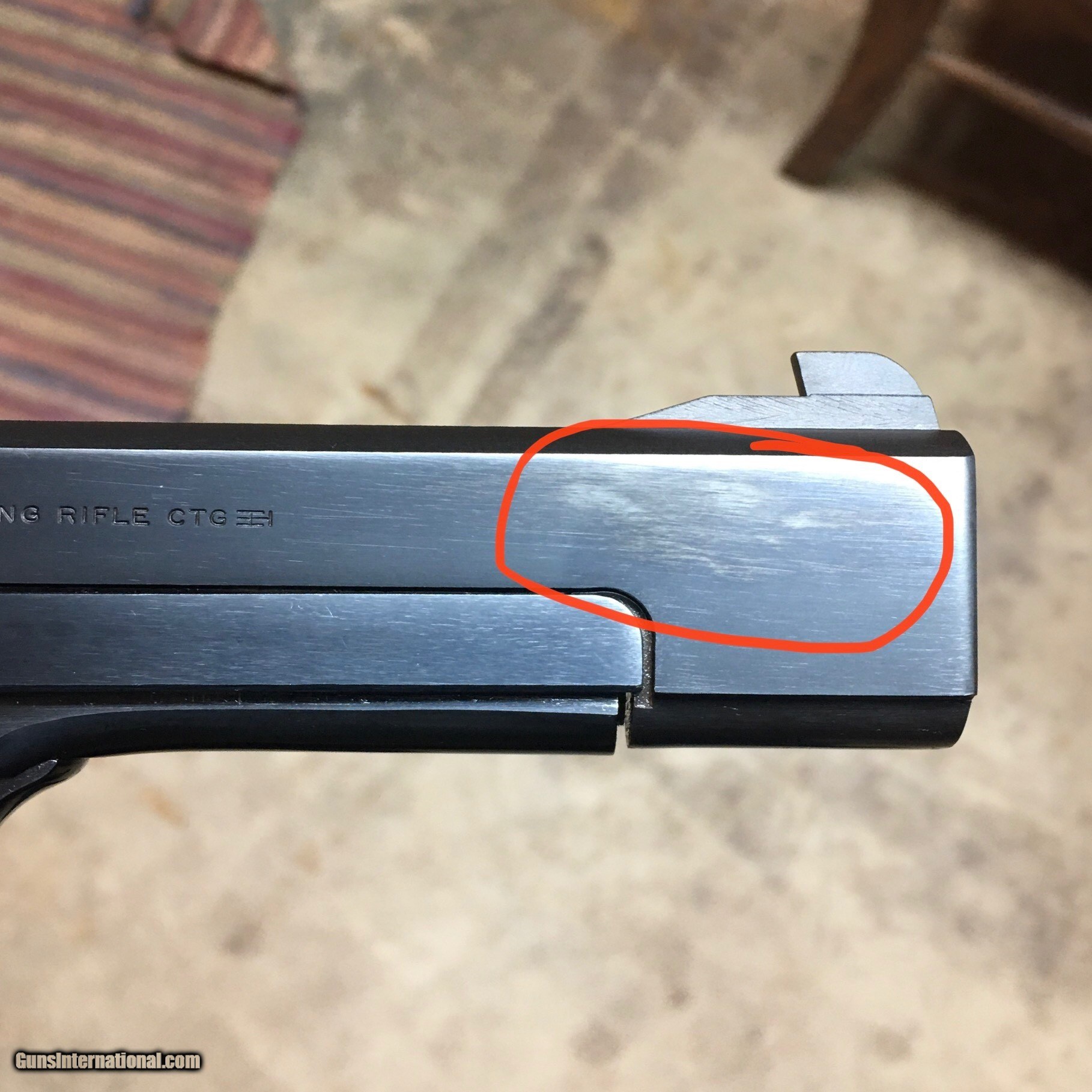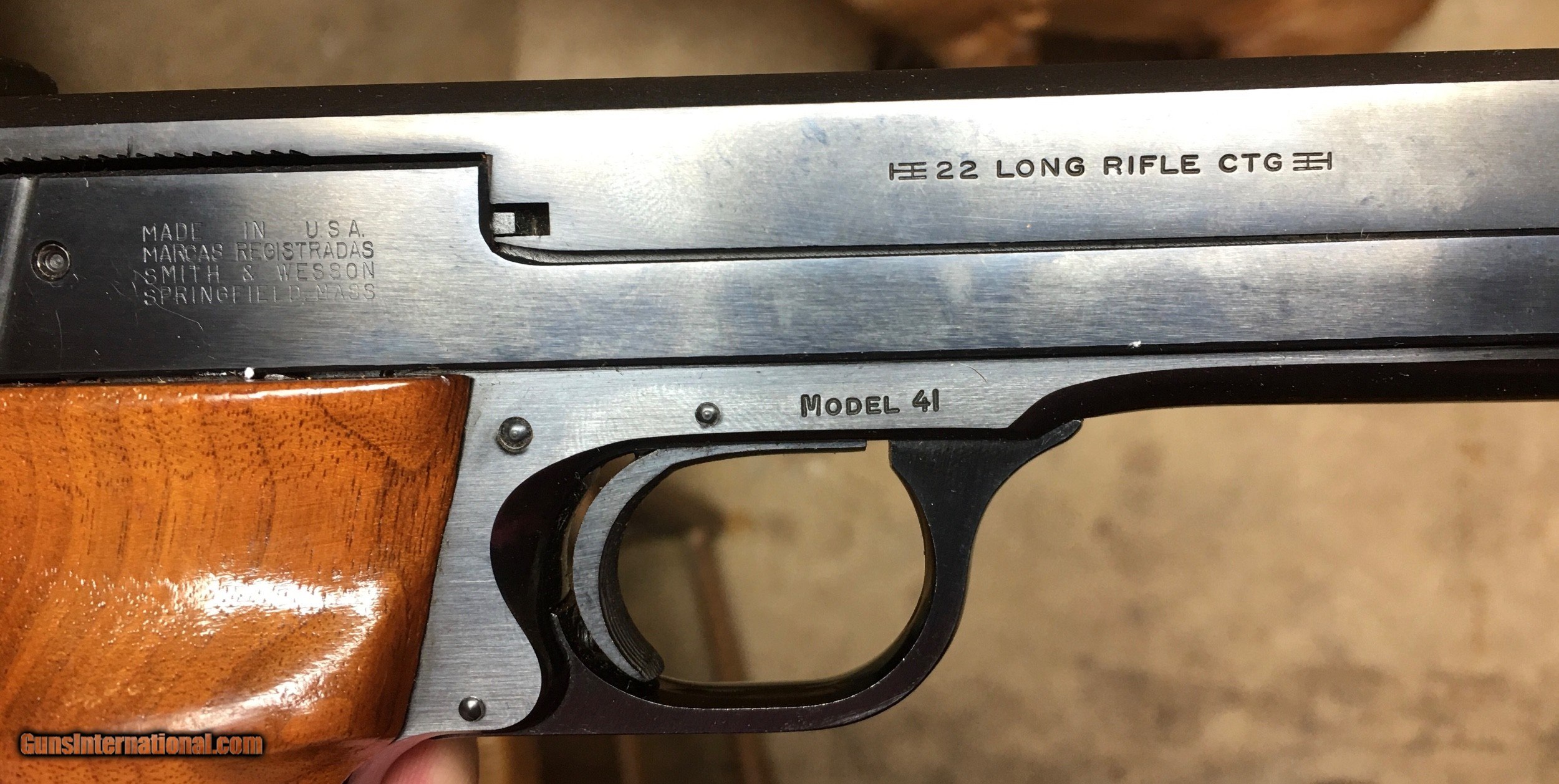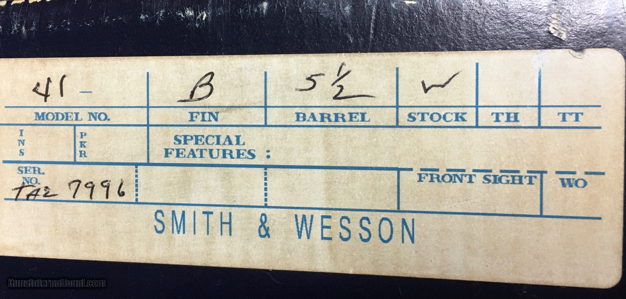 Description: Currently priced at $1000 but we may consider offers of other forms of "Corona Virus Currency " including Hand Sanitizer, Toilet Paper, Ammunition, Gold Bullion, and/or Canned Meat..... Smith and Wesson's offering for target pistol shooters. This one comes in its original box with some literature. it did not come with or have the barrel weights it has the shorter 5-1/2" barrel this one was made around 1985 - after they'd discontinued the extendable front sight. it's a very good piece with the original flawless grips. has a scratch and some blue wear on left side of frame/barrel (see highlighted photos) **********Blue Star Hobbies is a group of friends in Central Illinois working together to ocassionally offer up items from our personal collections. From time to time we may list a rifle or shotgun but our focus is mostly S&W, Colt, & Ruger handguns built between 1946-1980. Our guns are better than our photography. We try to highlight flaws with red circles and everything else is usually glare or blanket fuzz. If you have a question about a photo please ask. We follow all Federal and State laws and GI policies. Please add $20 for standard shipping. Our FFL will ship to your FFL on Mondays, Tuesdays and Wednesdays to minimize in-transit risks. ********** SOLD Manufacturer: Smith and Wesson Model: 41 Serial Number: TAE7996 Caliber Info: 22LR Condition: VG Manufacture Date: ca. 1985 |