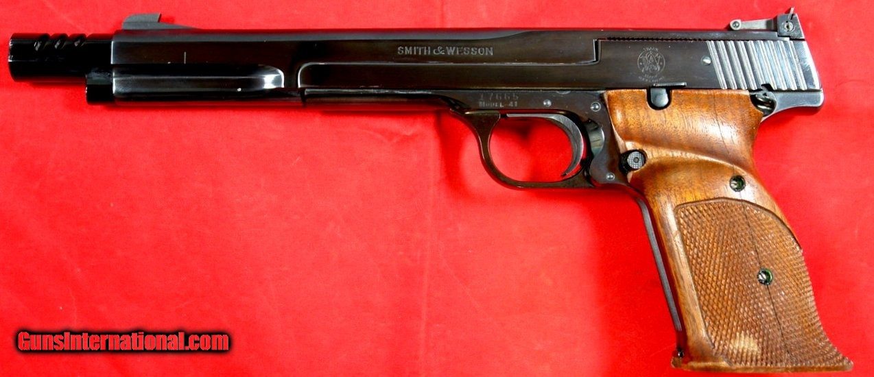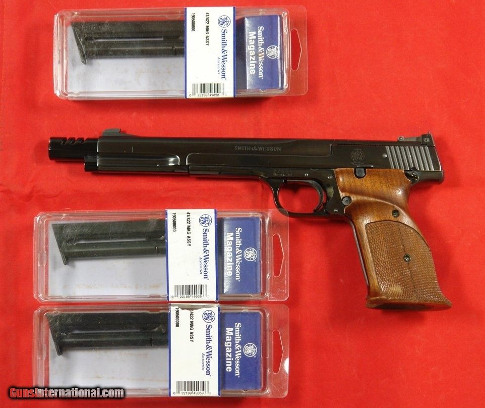 SMITH AND WESSON S&W MOD. 41 MODEL 41 TARGET PISTOL IN .22 LR WITH 7” BARREL ORIGINAL MUZZLE BREAK AND 3 EXTRA MAGS.