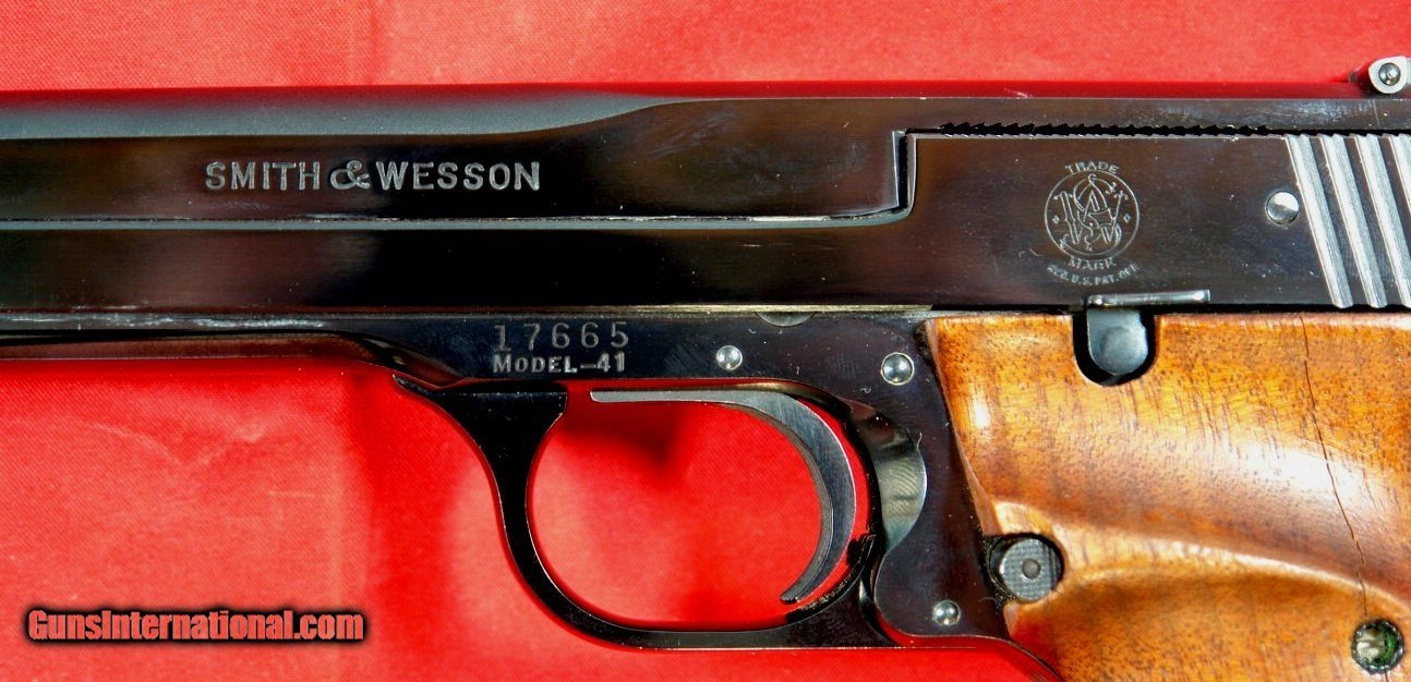 Description: 32955- SMITH AND WESSON S&W MOD. 41 MODEL 41 TARGET PISTOL IN .22 LR WITH 7” BARREL ORIGINAL MUZZLE BREAK AND 3 EXTRA MAGS. In great condition and functions flawlessly. With 3 later new in box factory magazines. With only a small mark on right side behind trigger from everyday wear- great blueing everywhere else. Original grip has a hairline crack in it but still structurally sound. Operates smoothly. Original muzzle break also in great shape. $1,099 SOLD Curio/Relic: Yes Handgun Caliber: .22 Long Rifle |
