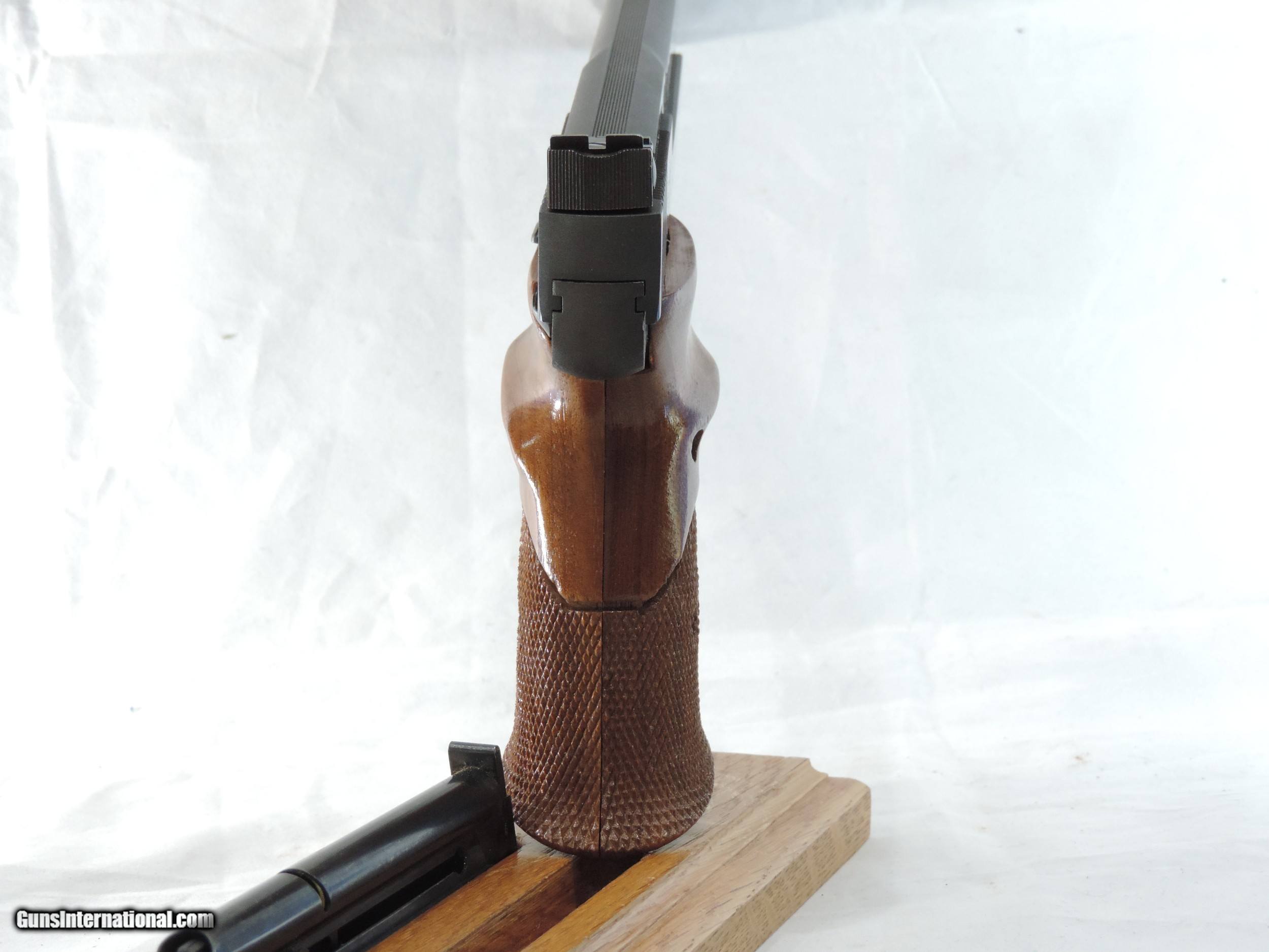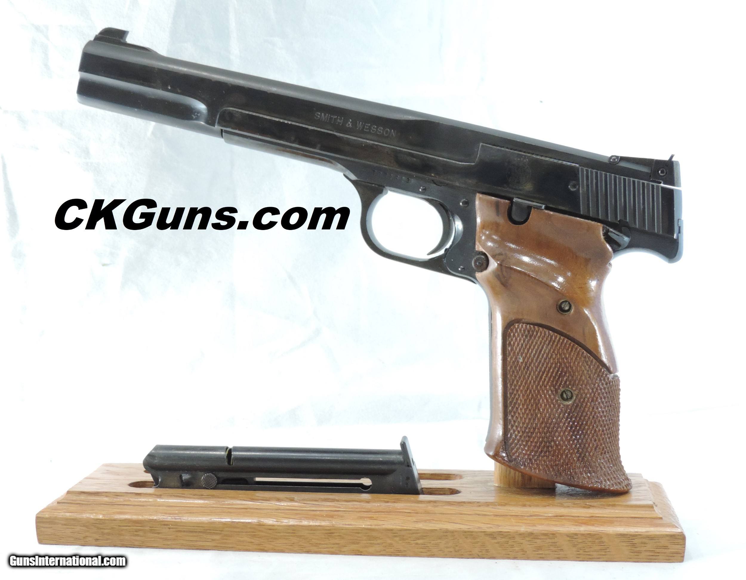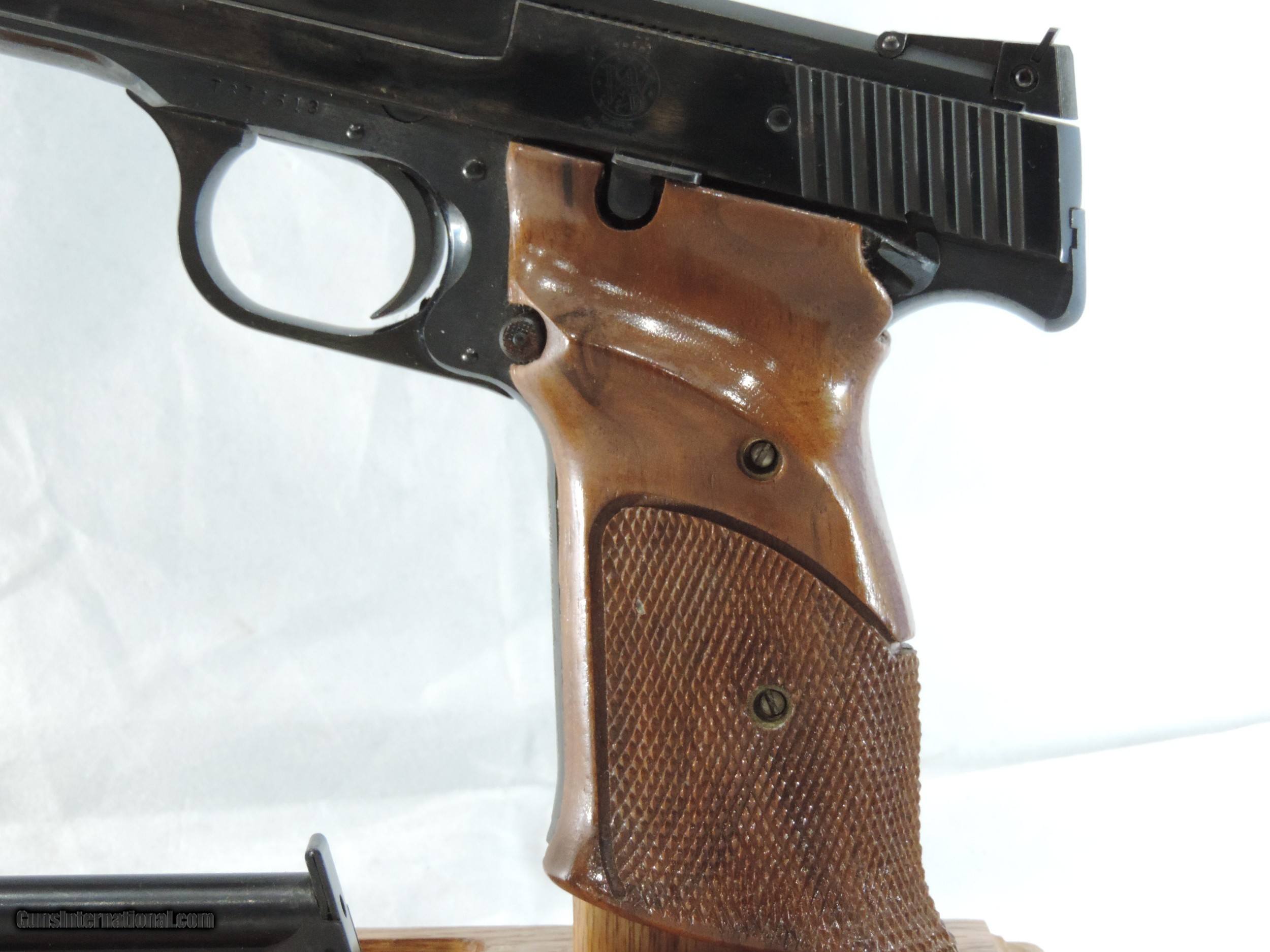 Description: INV. 7992 SMITH & WESSON, (S & W) 41, .22LR, #TBZ1513. WHAT A FIND FOR THE GUY WHO NEEDS A TROPHY TAKER AND THE PRICE IS MORE IMPORTANT THAN BEAUTY. THIS WINNER HAS SEEN LITTLE USE BUT DOES HAVE A FEW SURFACE BLEMISHES ON IT'S LEFT SIDE WHICH HAVE NO EFFECT ON IT'S SUPER PERFORMANCE. THE REST OF THE GUN IS PRISTINE. THE FRONT GRIP STRAP HAS NO SIGN OF GRAYING. IT LOCKS UP TIGHT AND FUNCTIONS PERFECTLY. THE SLIDE RAILS, BOLT FACE AND FEED RAMP SHOW VERY LITTLE IF ANY USE. THE WALNUT THUMB REST GRIPS ARE AS PRISTINE. THE BORE IS MIRROR BRIGHT AND RAZOR SHARP WITHOUT A TRACE OF FROST. SO, IF A GREAT PRICE IS MORE IMPORTANT THAN LOOKS HERE'S A GREAT CHANCE TO OWN A REAL WINNER, ONLY..... $895.*** *** INCLUDING OUR "PURCHASE SATISFACTION GUARANTEE". To purchase this firearm or if you want to request more information contact us at: Email ckguns[at]ymail[dot]com Phone 201-512-0002 Cell 201-575-6838 FAX 201-215-4759 We accept most major credit cards. Prices shown are Discounted 3% for Cash or Check. The buyer must be familiar with all the laws governing the purchase and the ownership of firearms in their own city and state. The Yankee Armorer, Inc is not responsible for any failure to comply with or observe these laws. The Yankee Armorer, Inc will only ship after full payment and receipt of all required documents. Shipping: Add $35.00 for handguns, $45.00 for long guns. New Jersey buyers are subject to a 7% sales tax. The Yankee Armorer, Inc offers a 3 day inspection period with full refund upon return of intact firearm and in the original condition. The Yankee Armorer, Inc offers a no interest lay away program - 25% down; 25% in 30 days; 25% in 60 days; and full payment in 90 days. Any violation of this policy is subject to restocking and forfeiture of all payments. Any variation from this policy must be agreed to in advance. Unshipped Cancelled sales are subject to a 20% restocking fee. Be advised that all firearms sold by The Yankee Armorer, Inc. or the Gun Exchange, LLC (SELLER) are sold as collector’s items. They have not been fired or tested for safety and must be examined by a license gunsmith prior to use. By purchasing any item from the (SELLER), you are agreeing to hold the (SELLER) free from any damages or lawsuits of any nature. Any item left for transfer or storage will be charged to $25.00 per month, per item from the day of its receipt. Any variation from this policy must be agreed to in advance. Store hours 10:00 am to 5:00 pm Tuesday -Saturday. It's always best to call for appointment. Store 201-512-0002, cell 201-575-6838. SOLD Handgun Caliber: .22 Long Rifle |