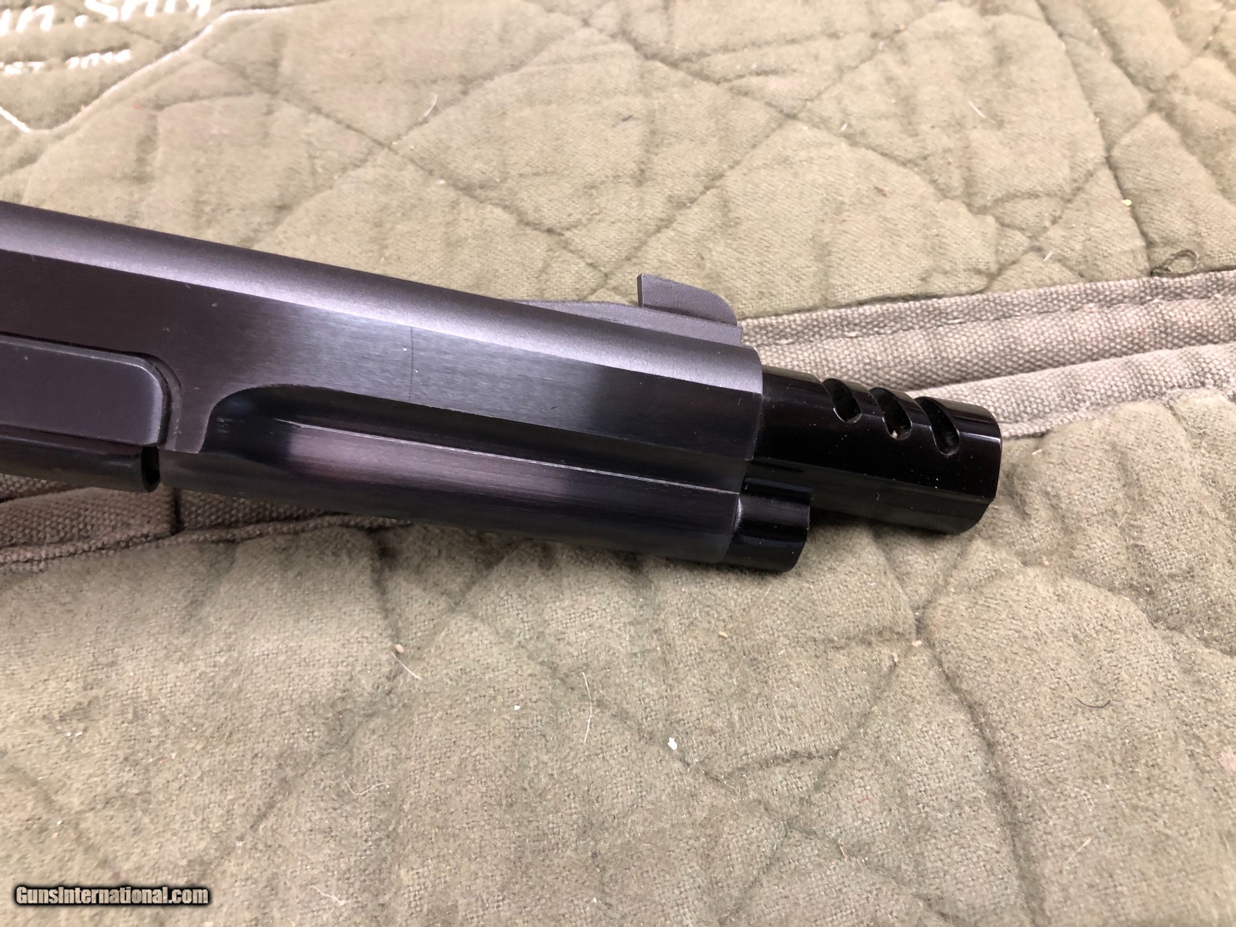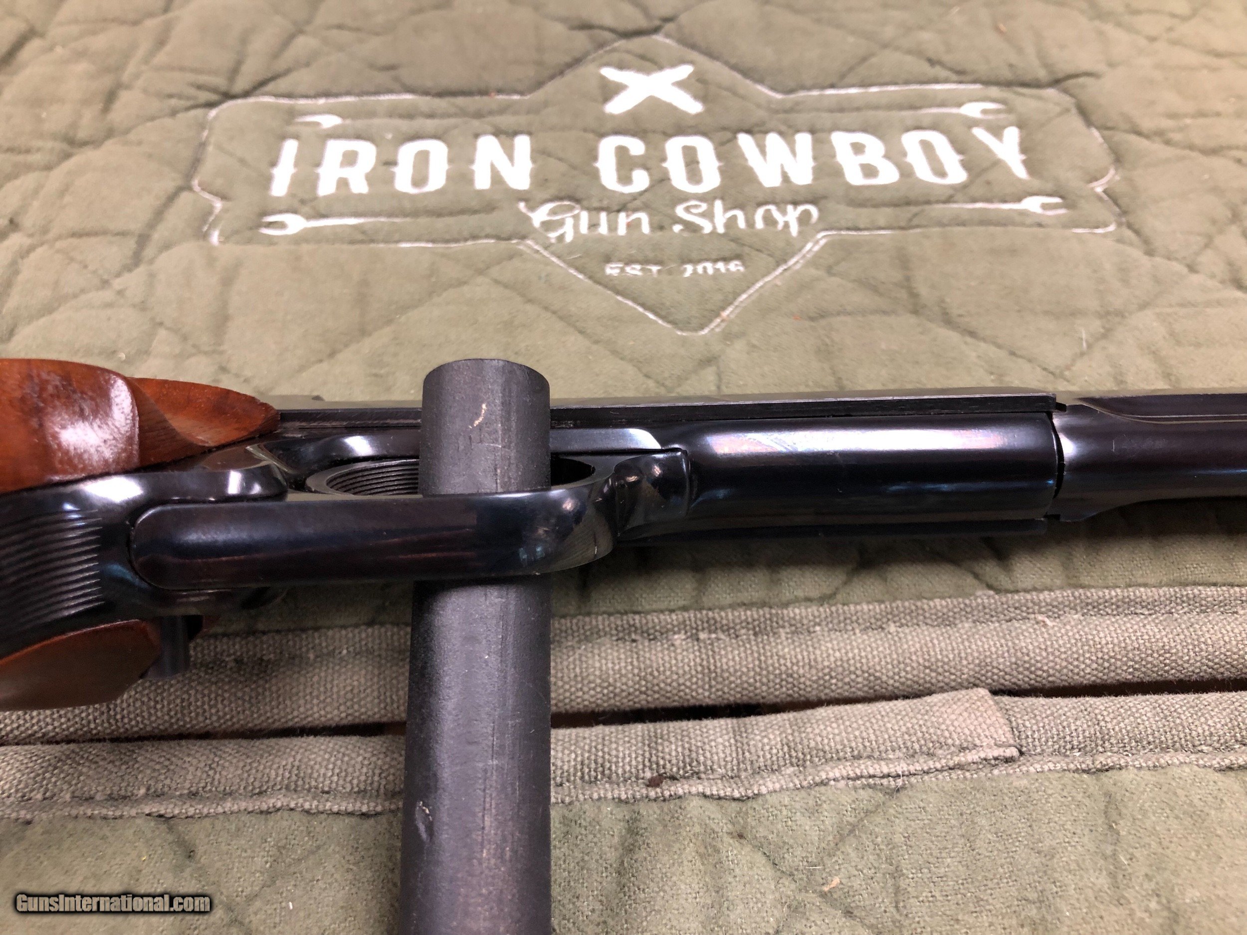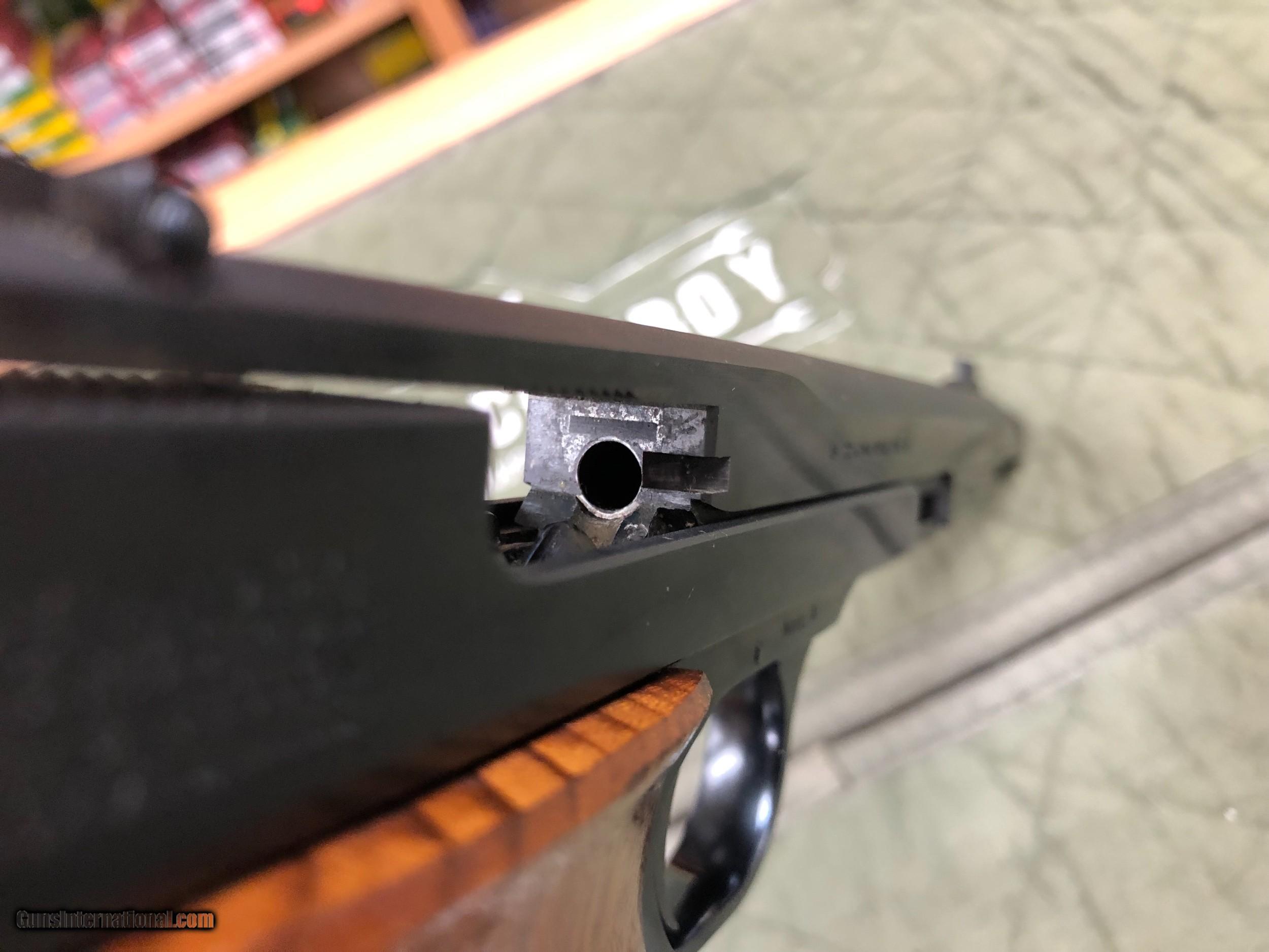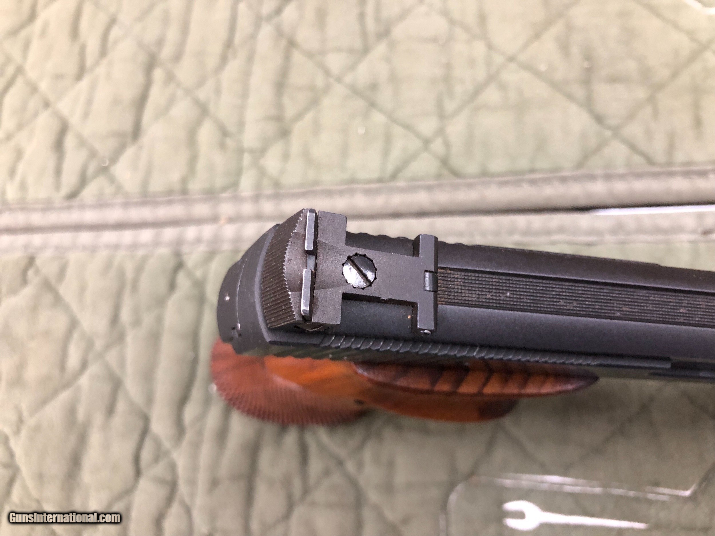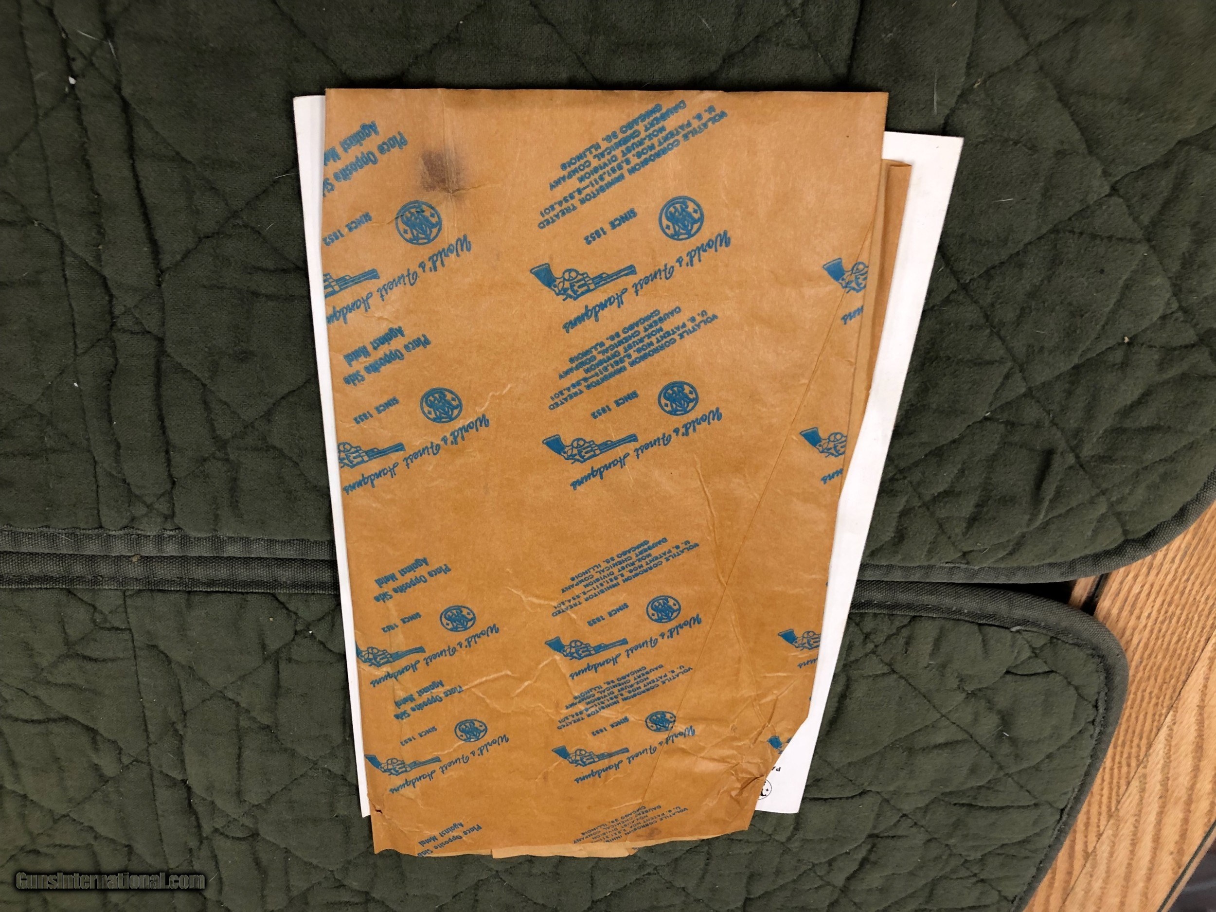 Description: Up for sale is a beautiful Smith & Wessin Model 41. This target pistol is chambered in 22 Lr and sports a 7 3/8-inch barrel. The bore is in excellent condition. This 41 has a barrel extension/muzzle break. The checkered target grips feature thumb rests and are in excellent condition. Target sights and cocking indicator are a few of the desirable features on this model 41. This 1960’s-70’s vintage Model 41 pistol is in excellent original condition, retaining 97% of its original blue finish, with only minor handling marks one by the slide release and another small scratch on the opposite side on the slide. Comes with its original box and papers. It is getting hard to find older model 41’s in this condition with box and papers. This would be a great addition to any smith & Wesson Collection. Thanks for looking. SOLD |