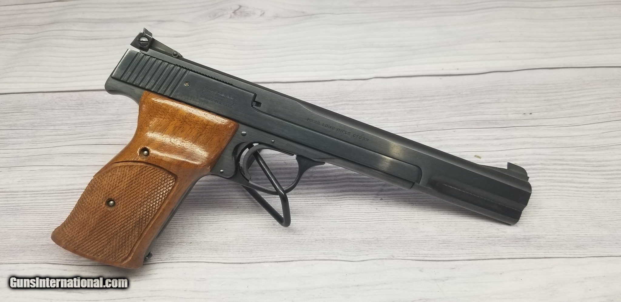 Description: Guns Listing ID: 1050821 The Smith & Wesson Model 41 is the top of the line in rimfire pistols. Used by national level competitors for acute precision in competition, the Model 41 is considered one of the best .22 target pistols ever manufactured. Precision, Button-Rifled Barrel Micrometer Click Adjustable Target Rear Sight with Undercut Patridge Front Sight Ergonomic Checkered Target Grips Switch-Barrel Design Allows Both 5.5” and 7” Barrels on One Frame Crisp Target Trigger Factor Set at 2.75 to 3.25 lbs. User Adjustable Trigger Stop S&W 41 in good condition, item comes with original box & original parts list. Nice wood grips in great condition, very minimal wear on this piece. SOLD Manufacturer: SMITH & WESSON Model: 41 Caliber Info: .22 LR Condition: Used - Non-Certified Barrels: 7 BARREL Finish: BLUE |