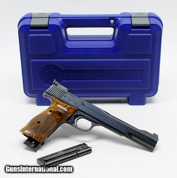 Description: Smith & Wesson 41 22LR Pistol. Excellent In Hard Case. Excellent Condition. TT COLLECTION AVAILABLE FOR IMMEDIATE PURCHASE AT OUR ONLINE STORE The Smith & Wesson Model 41 is a semi-automatic pistol developed by Smith & Wesson after World War II as a competitive target pistol. It was designed with a 105 degree grip angle, the same as the Colt M1911 pistol, to maintain a consistent grip angle. SPECIFICATIONS
