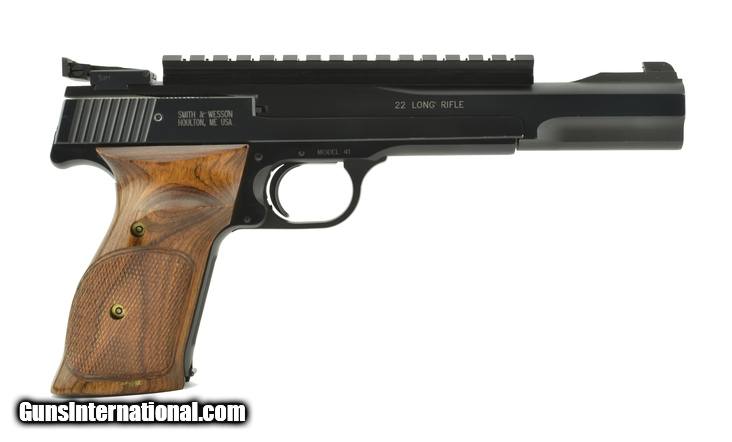 Description: Smith & Wesson 41 .22LR Caliber Pistol. Popular target pistol with 7” barrel. Excellent condition with box and magazine.