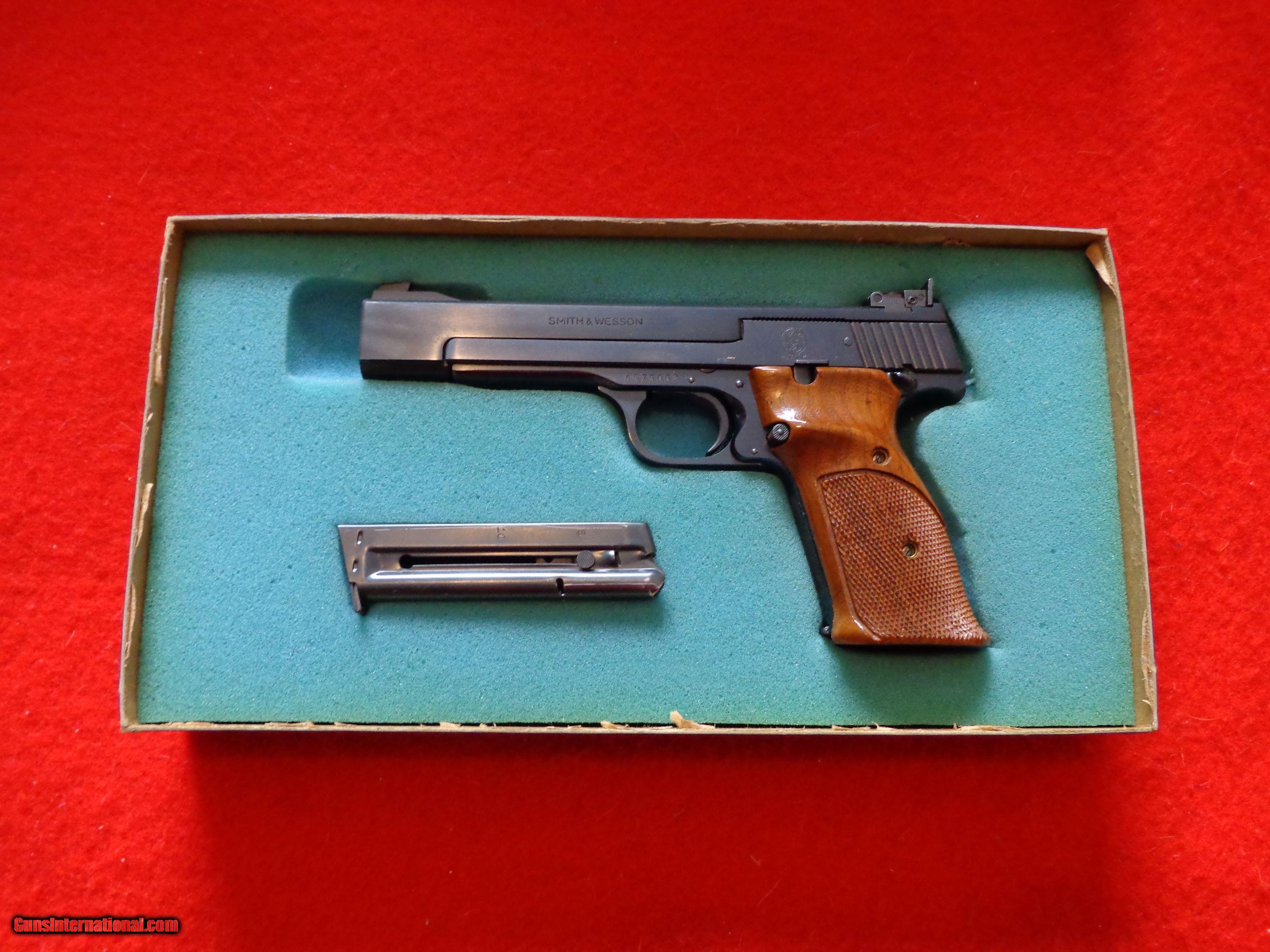 Description: Smith & Wesson model 41 in the box with the factory extra clip. I am the original owner and purchased the gun back in the mid seventies. I believe that the gun was only factory test fired. The barrel is 5.5 inches long, the bluing is as it was when it left the factory and the grips are as well. All of the paperwork is with the gun as it came from the factory---see the pictures--. this gun is a well made "American" target 22 handgun that I am sure someone will get a lot of enjoyment out of. SOLD Manufacturer: Smith & wesson Model: 41 Serial Number: A 575 062 Caliber Info: 22 Bore: like new Condition: like new Metal Condition: like new Barrels: 5.5 in Finish: like new Sights: factory Manufacture Date: 1975 |