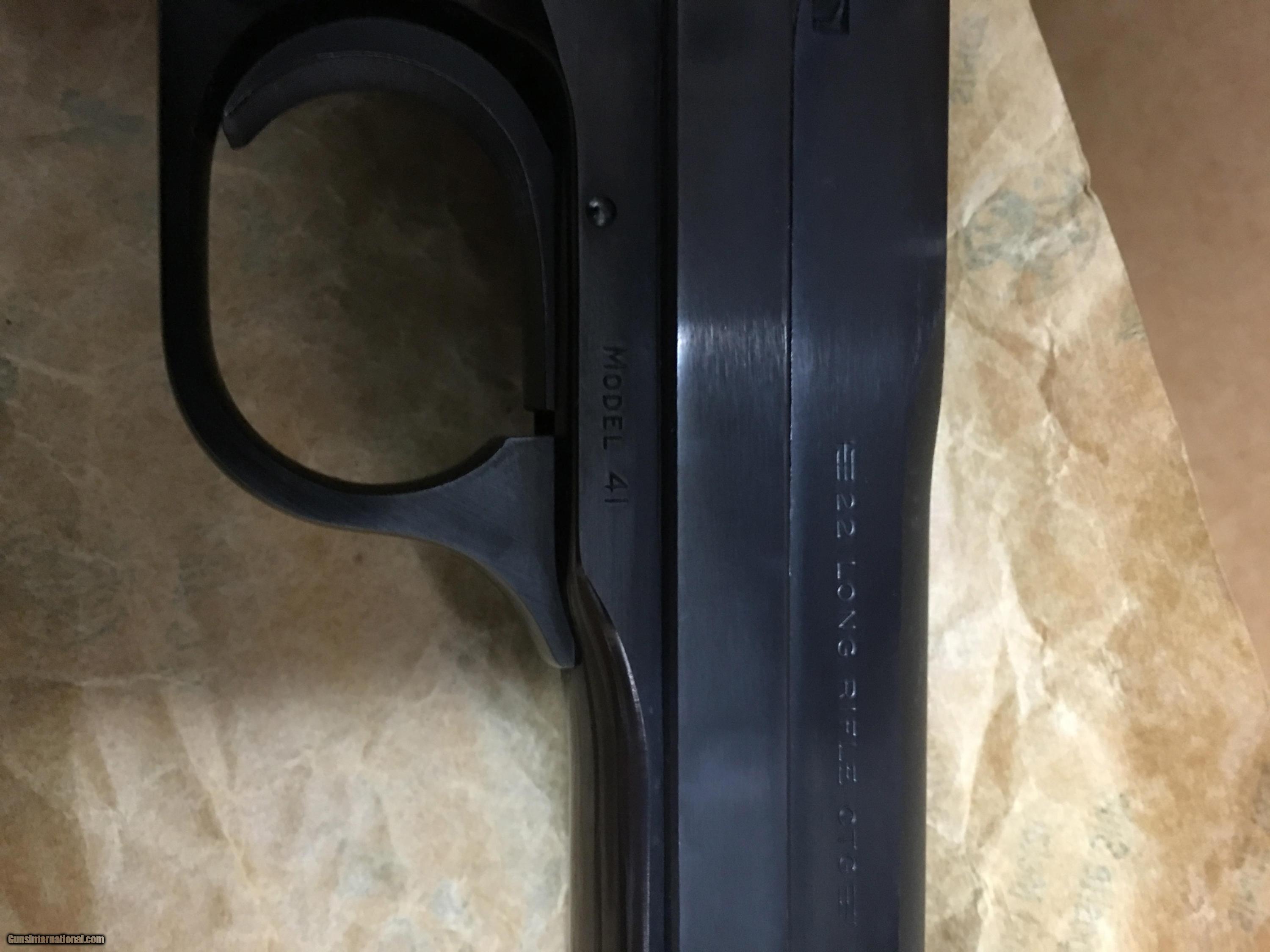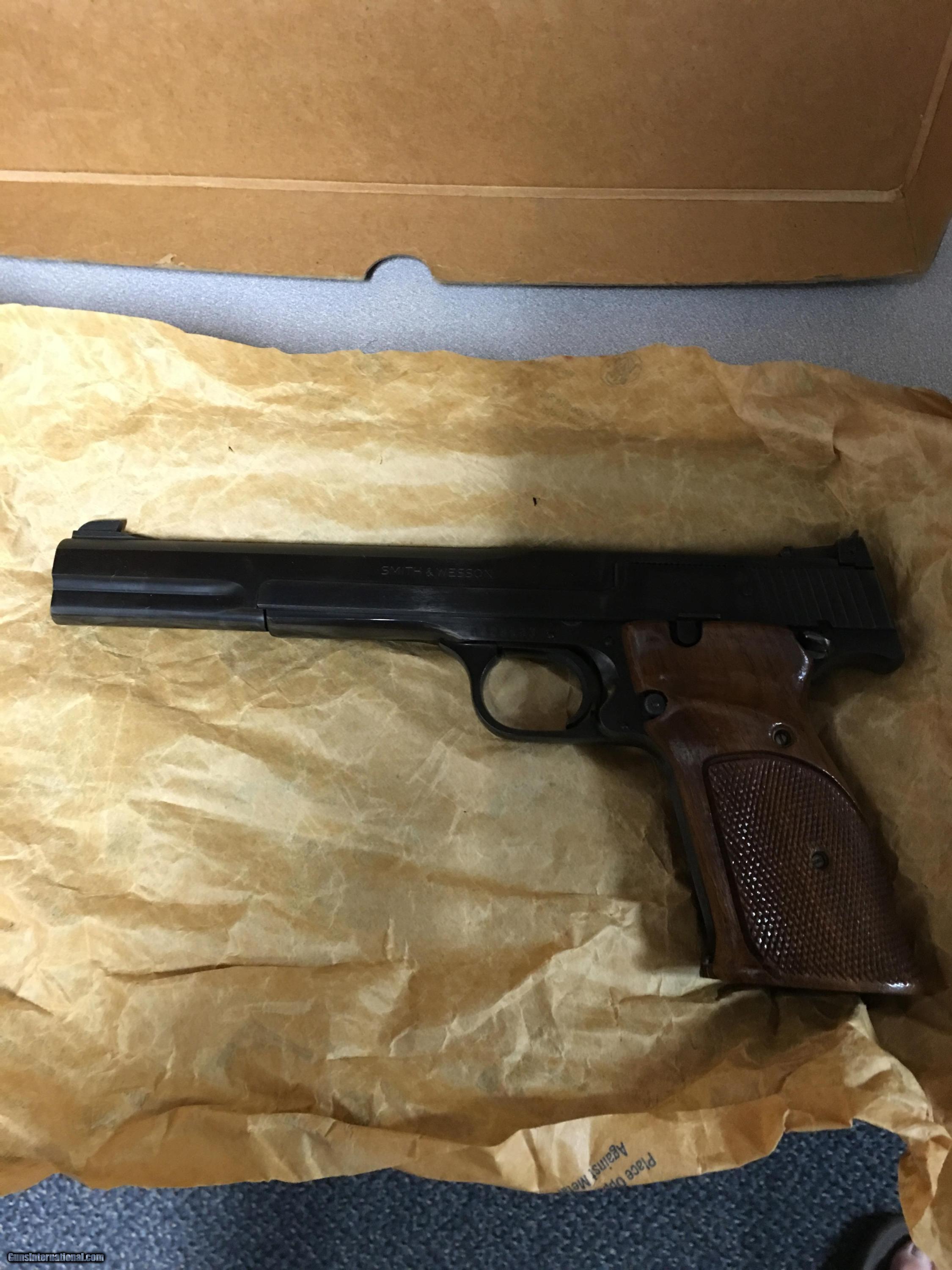 Description: ( Sold pending funds )Minty 99% Smith & Wesson model 41 7" early gun with cocking indicator, & extra magazine, 100% original in the box $ 1595.00 + $45.00 shipping to your FFL. sorry no credit or debit cards, no Paypal postal money orders ship quick SOLD Manufacturer: Smith and Wesson Model: model 41 Caliber Info: 22lr Metal Condition: minty Wood Condition: prefect Bore Condition: perfect Barrels: 7 Barrel Type: heavy barel |