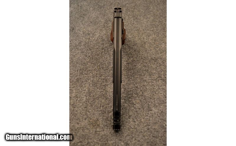 Description: This is an early Model 41 with a cocking indicator and a five digit serial number. An accurate and reliable target pistol, this Model 41 would make a great range pistol. .22 Long Rifle SOLD Chambers: .22 Long Rifle Metal Condition: Very Good Wood Condition: "Very Good, bottom of grip has been modified Bore Condition: Very Good Barrels: 7" with factory muzzle brake Weight: 2 Lbs. 9 Ozs. Sights: Open sights Item Location: Albuquerque, NM |
