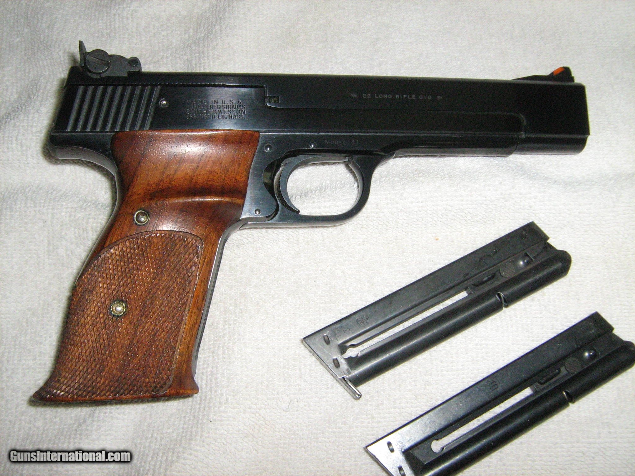 Description: Offered for sale is a very clean, fairly early Model 41 5 1/2" pistol in 22lr. This is the second generation, most likely built in the early 60's. It has the bright high polished blued finish. The serial number does not have the prefix. It is all numeric, 417XX. Overall the gun is in very good to excellent condition with a few very minor handling marks, Offered at $1,095.00 plus $45.00 shipping to your FFL holder. Payment by personal check, bank check or money order is acceptable. SOLD Serial Number: 417XX Caliber Info: .22 long and long rifle Condition: 95% Metal Condition: 95% Wood Condition: 95% Bore Condition: bright and shinny Barrels: 5 1/2 Triggers: single selective |