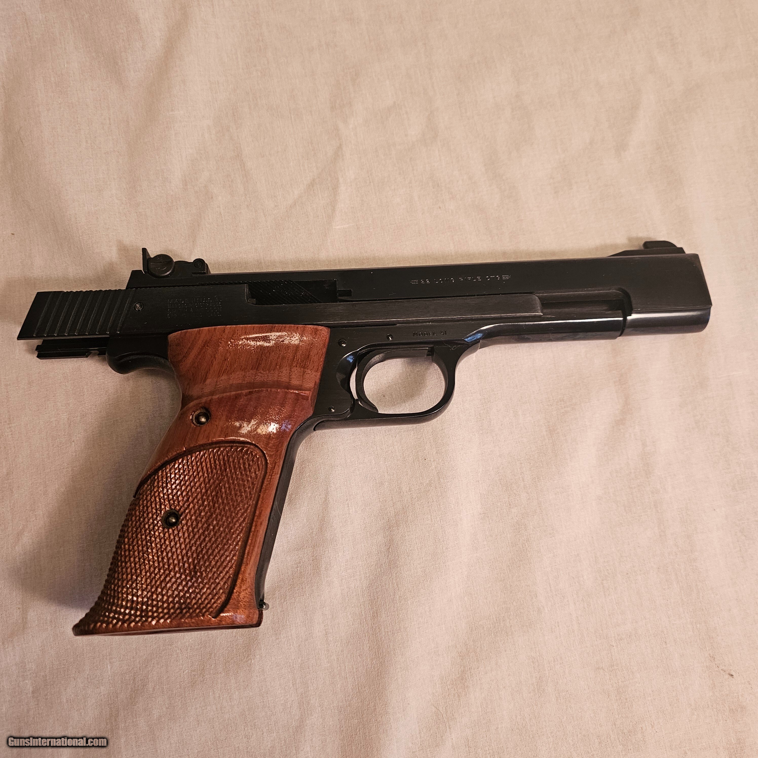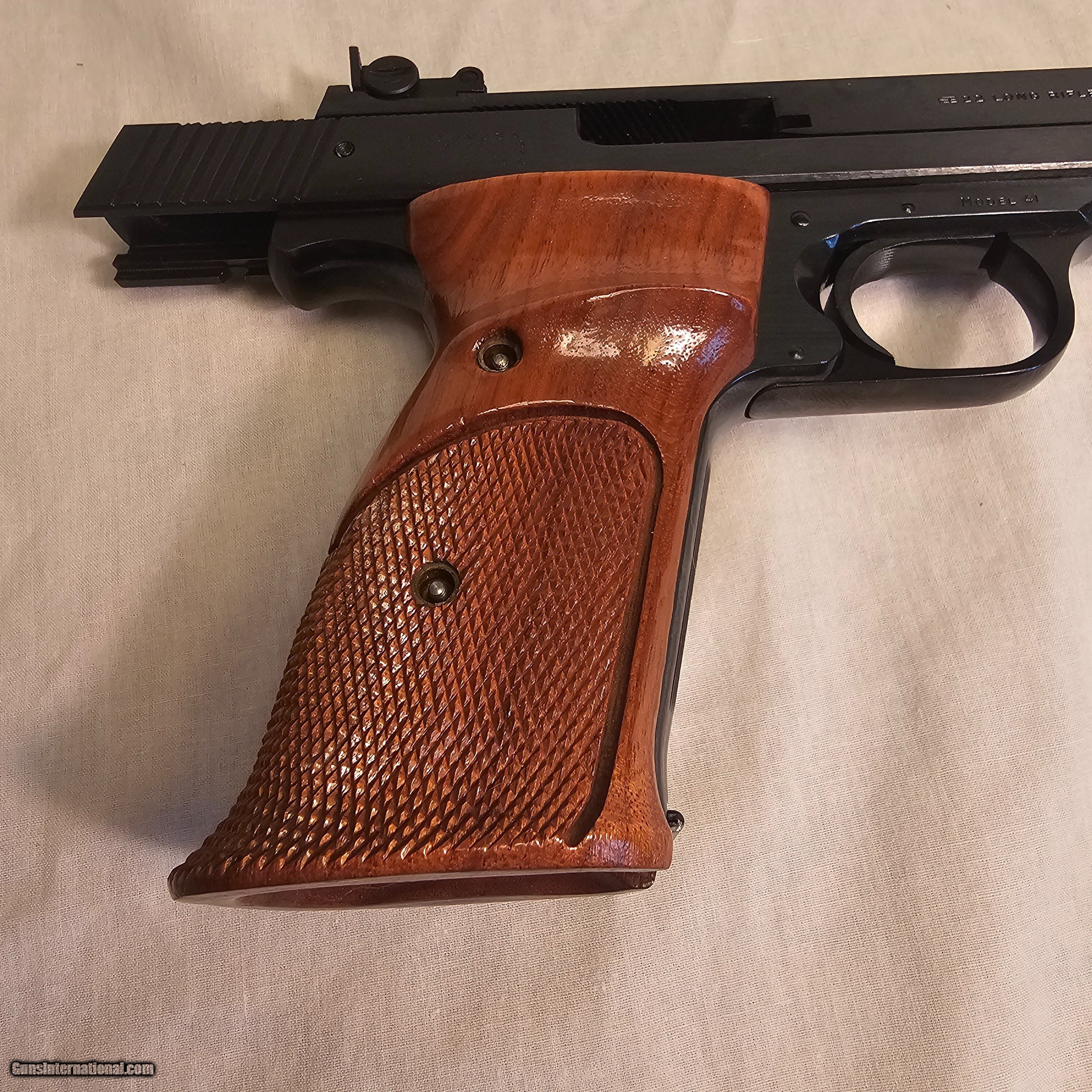 Description: Smith & wesson model 41 target Barrel length 5 1/2" One clip only. Condtion like new perfect bore. Wood grips like new no marks and no use marks. We have the paper work but no box Want to purchase call shop 716-941-3946 Price: $900.00 Shipping: $60.00 Contact Seller |