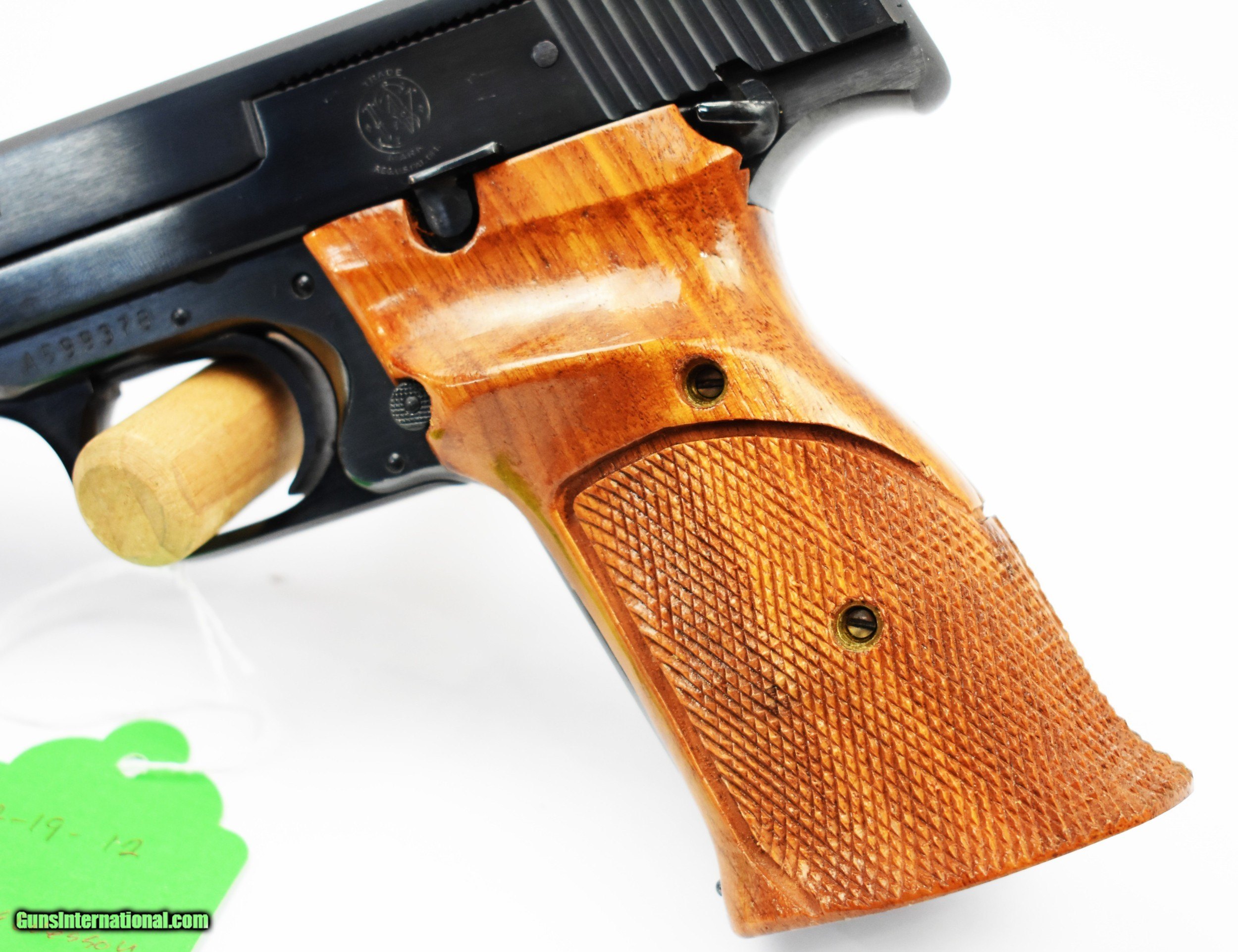 Description: Smith & Wesson model 41 in excellent condition. Manufactured in 1979 this pistol has 99% blue with only some very light scuff / scratch marks that are barely worth mentioning. Grips are like new with sharp checkering and no chips on the finish. The bore is like new. These pistols are known for there extreme accuracy and smooth operation. Comes with one magazine. Maine Residents add 5.5% sales Tax Price Reflects a cash discount of 3.5% ($41.96) for this item Please call for any questions. Please utilize the "Buy Now" button for final purchase. SOLD Handgun Caliber: .22 Long Rifle Manufacturer: Smith & Wesson Model: Model 41 Serial Number: A599378 Barrel Length: 5-1/2 Condition: Very Good - Excellent Metal Condition: Very Good - Excellent Wood Condition: Very Good - Excellent Bore Condition: Excellent Action: Semi automatic Manufacture Date: 1979 Item Location: Buxton Maine |