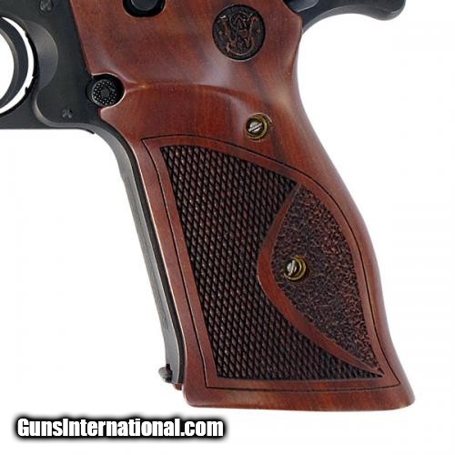 Description: Manufacturer: Smith & Wesson Model: PERFORMANCE CENTER® Model 41 SKU: 178031 Caliber: .22 LR Action: Single Action Capacity: 10 + 1 Rounds Barrel: 5.5" Carbon Steel Safety: Thumb Safety Frame: Carbon Steel, Blued Slide: Carbon Steel, Blued Overall Length: 10.5" Grips: Custom Wood Target Sights: Front- Removable, Rear - Adjustable Weight: 42.6 oz The Smith & Wesson Model 41 is the top of the line in rimfire pistols. Used by national level competitors for acute precision in competition, the Model 41 is considered one of the best .22 target pistols ever manufactured. Features • Precision, button-rifled barrel • Micrometer click adjustable target rear sight with removable Patridge front sight • Ergonomic checkered target grips • Switch-barrel design allows both 5.5" and 7" barrels on one frame • User adjustable trigger stop • Integral Picatinny rail ALL BACKED BY OUR SMITH & WESSON LIFETIME SERVICE POLICY. SOLD |