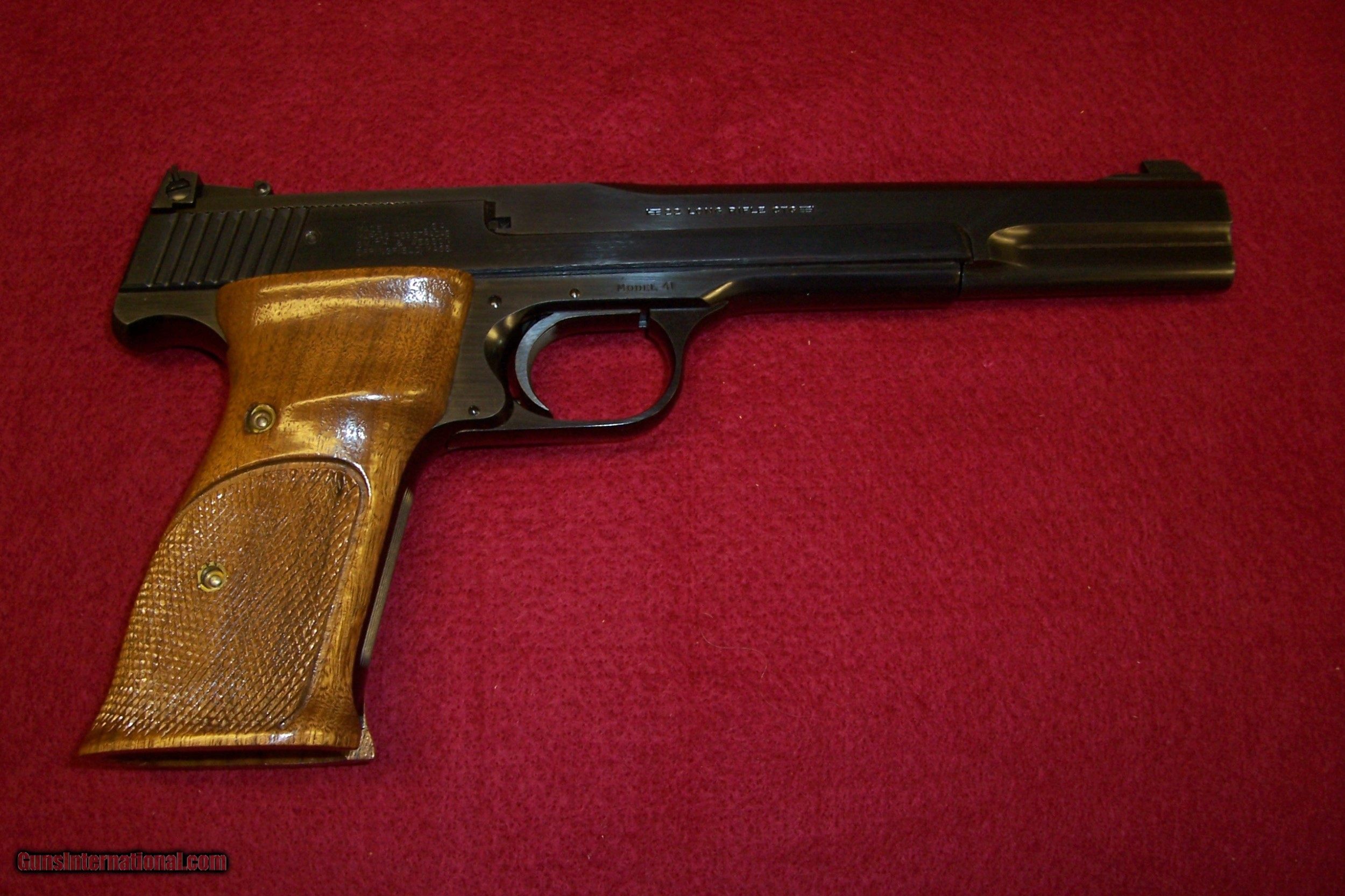 Description: Smith & Wesson Model 41 Target Pistol. Like new. 7" Blue with 2 magazines, box, tools, and paperwork. $1350.00, free shipping to lower 48. Must be shipped to FFL license holder. SOLD |