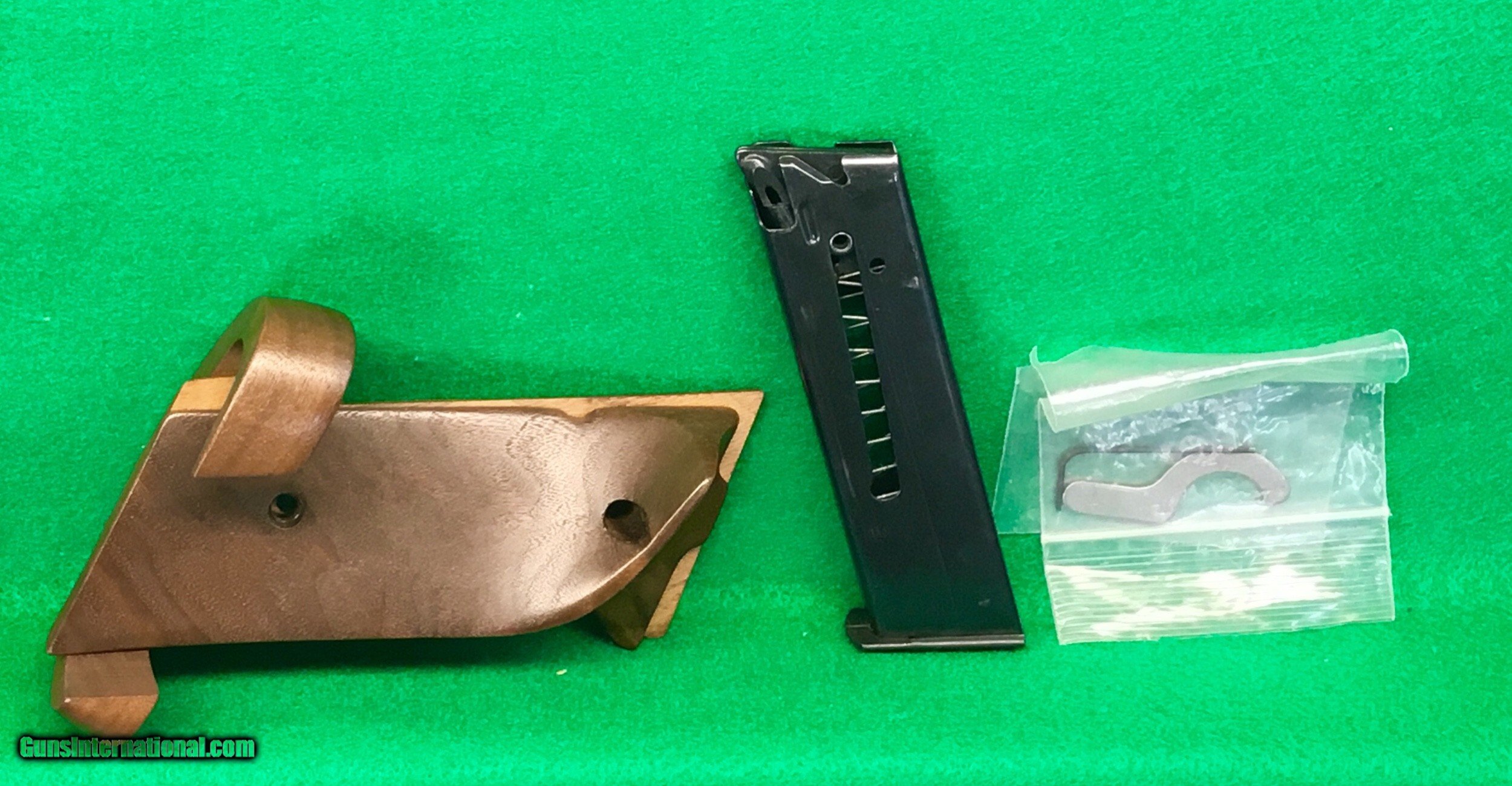 Description: Sale pending, no longer available. // What a beauty, S&W model 52-2 target pistol. Shoots 38 Special wadcutters only. Bore looks new, only to be expected since it only shoots lead bullets at low velocity. Barrel weight attached, two identical clips, barrel wrench plus a set of extra grips. $1198 plus $35 insured shipping. Lay a way available, no credit cards and no trades. SOLD |