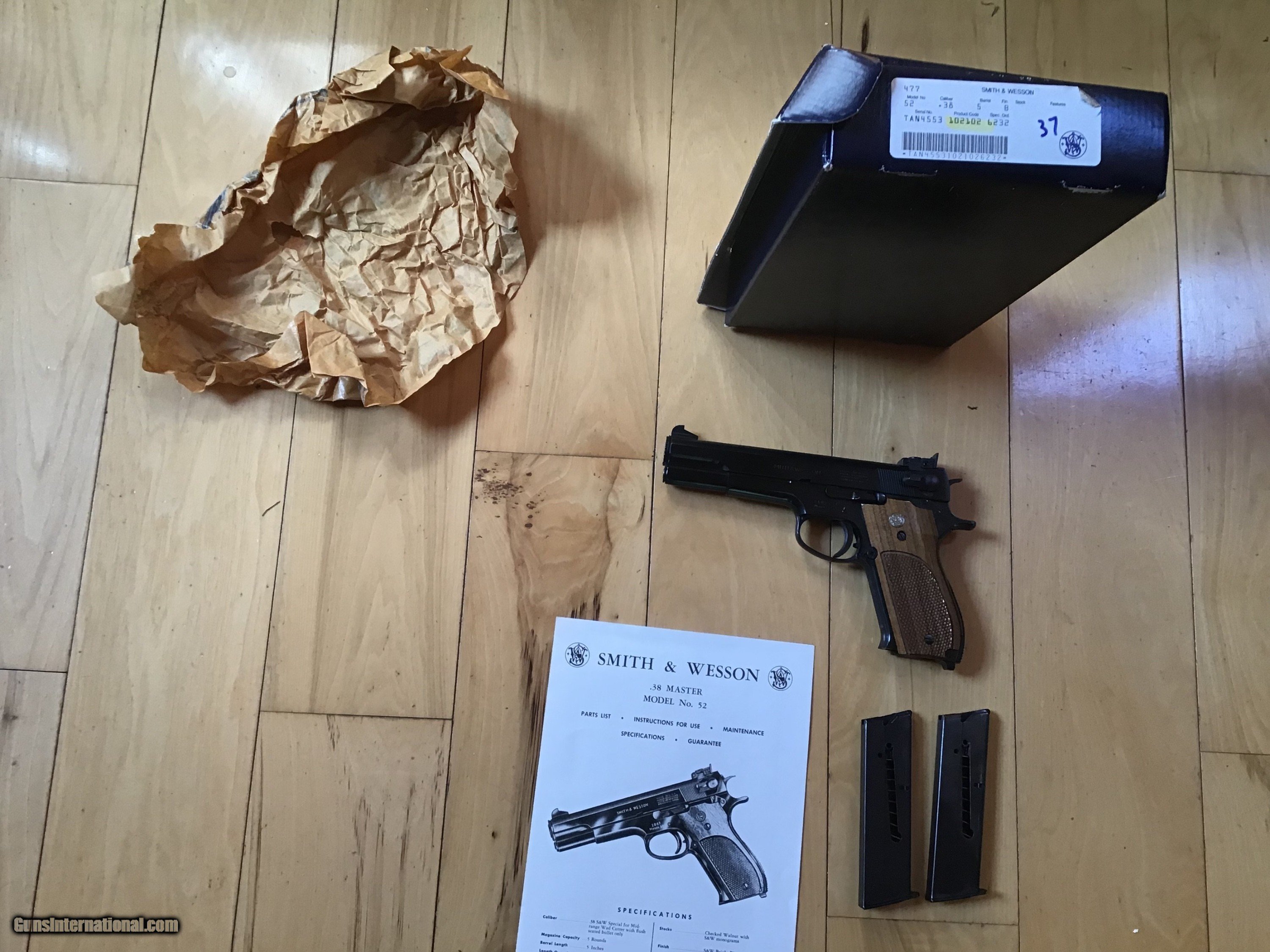 SMITH & WESSON 52-2 38 MASTER CAL. ALSO KNOWN AS 38 WADCUTTER, AS NEW IN THE BOX WITH 2 MAGAZINES & OWNERS MANUAL