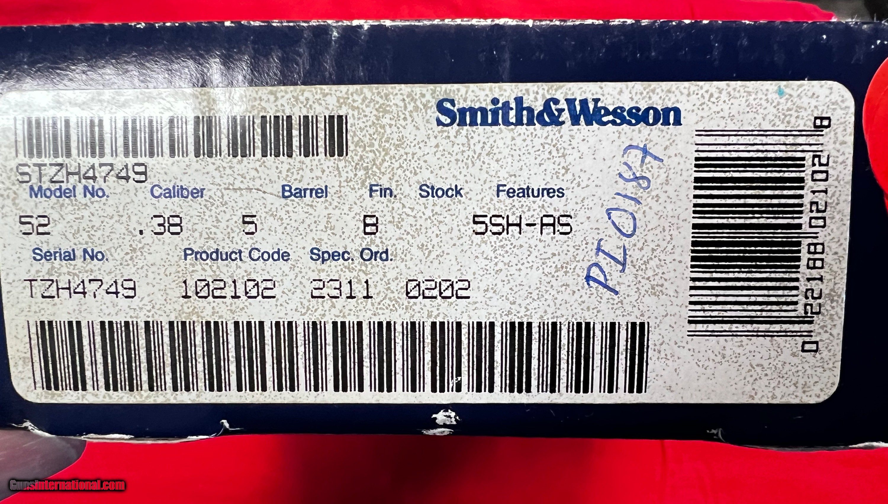 Description: Excellent in factory box S&W 52-2 .38WC Yes the box says it's blue. But it's not. S&W says it left factory blue. SOLD |