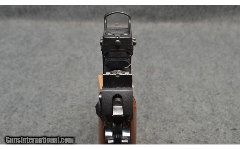 Description: This semi-automatic pistol is a Smith and Wesson Model 52-1 chambered in .38 S&W Special. It has a 4 inch barrel, 5 round magazine, and an Optima 2000 Reflex Sight installed. It is in overall very good condition with no visible bluing loss. .38 S&W Special SOLD Metal Condition: Minimal bluing loss Wood Condition: Original factory checkered wood grips Bore Condition: "Bright and shiny, crisp rifling Barrels: 4 inch Weight: 2 lbs 10 oz Sights: Fixed front sight and adjustable rear sight plus Optima 2000 Reflex Sight Item Location: Wichita, KS |