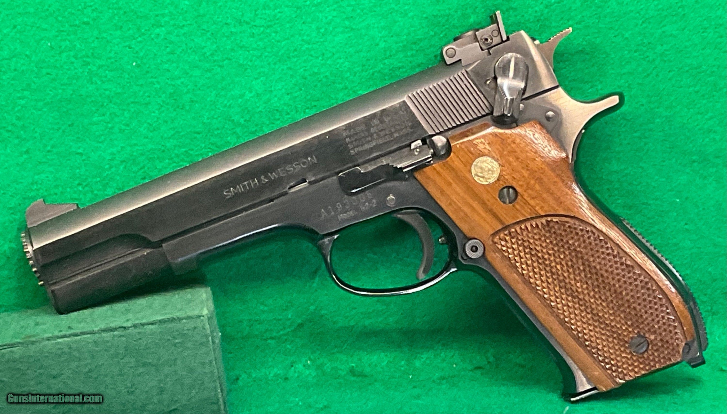 Description: Near mint S&W model 52-2, 38 special for wadcutters target pistol. No box but comes with 2 original clips. $1498 plus $35 insured shipping. No credit cards and no trades. 5 month layaway available. SOLD |