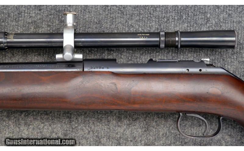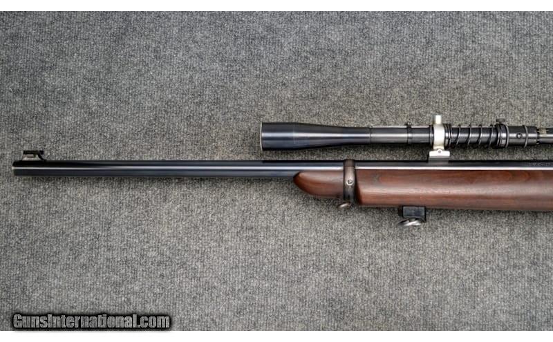 For your consideration, a Winchester model 52B chambered in .22 Long Rifle. Sighting consists of a J.W. Fecker scope with fine crosshair reticle. This piece dates to 1942. .22 Long Rifle