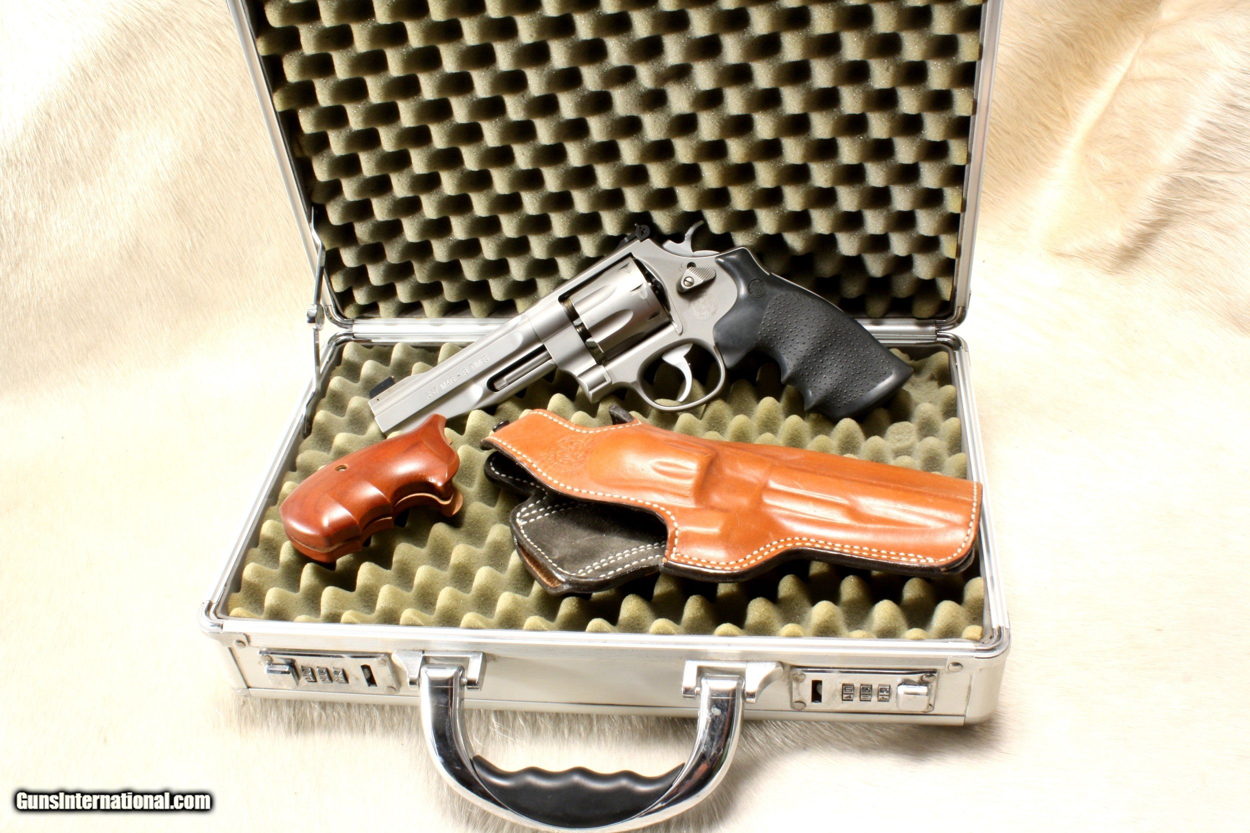Description: Smith & Wesson Model 627-5 Performance Center .357 Magnum Eight-8-Round Performance Center Pistol features a 5"inch Slab-Side Barrel is excellent condition 2 Pairs of Grips in its factory case. Plus these Features: Stainless Steel Constuction, Recessed Cylinder, Fluted Cylinder, Black Adjustable Rear, & Gold-Bead Front Sights. Trigger is fantastic! The Left-Side of the Barrel is Factory Stamped ".357 MAG - 8 TIMES ". The Right-Side of the Barrel is Factory Stamped: "Performance Center" . Includes EVERYTHING shown in photos, all of its original papers down to the S&W wrapping paper (all shown in photos) including DeSantis Leather. WHY CALL? My name is August and I am the owner. As an authorized dealer I must adhere to published retail pricing guidelines. You will get the absolute lowest delivered price by calling my direct line. 512-567-7855. You will get much more than that however. I want you to get the right gun both for you and your application. You won't be passed off to a clerk, rather you will speak directly to ME. Have the confidence you are buying the exact gun you need for your goals by discussing it with a master class competitor, instructor and fitter with over 40 years of experience in the shooting sports. I know the guns I sell and their makers. I visit them all and have relationships with their owners and gunsmiths. You will know what you are getting and be happy when you do. Thank you A TRULY DIFFERENT BUYING EXPERIENCE We are not open to the public so your gun has not been handled unlike retailers where guns are endlessly handled, slammed shut and clacked back on a rack countless times by the masses. I have managed firearms retail and could not stand this aspect of it. When you receive a gun from me it’s been packed with care and arrives as your NEW GUN. One person handles each gun from the time it arrives until it leaves and that is me. When a gun is sold it gets properly packed that day, by me with FedEx tracking sent to my client immediately. I contact your FFL FOR YOU, and handle all the paperwork. California? No problem, I have been shipping there for over a decade. Canada and Australia- have sent many there, just ask for details. Buying a fine gun should be fun and exciting. I don't want to sell you one gun, I want your business for life and want your referrals from building trust. I have been the largest seller of Caesar Guerini, Syren and Fabarms for the 5th straight year because of service and value. This is my model and I hope you give me a call. THANK YOU for reading. AUGUST M CROCKER ph 512-567-PULL (7855) SOLD |