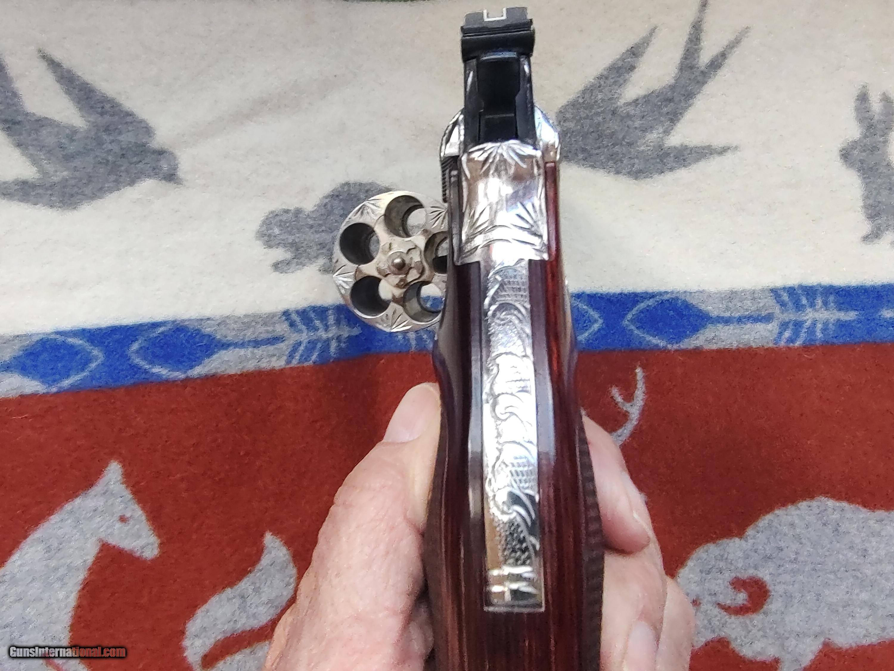 This is one of a kind ( I think) , model 69 S&W fully engraved with a gold ring around the cylinder
