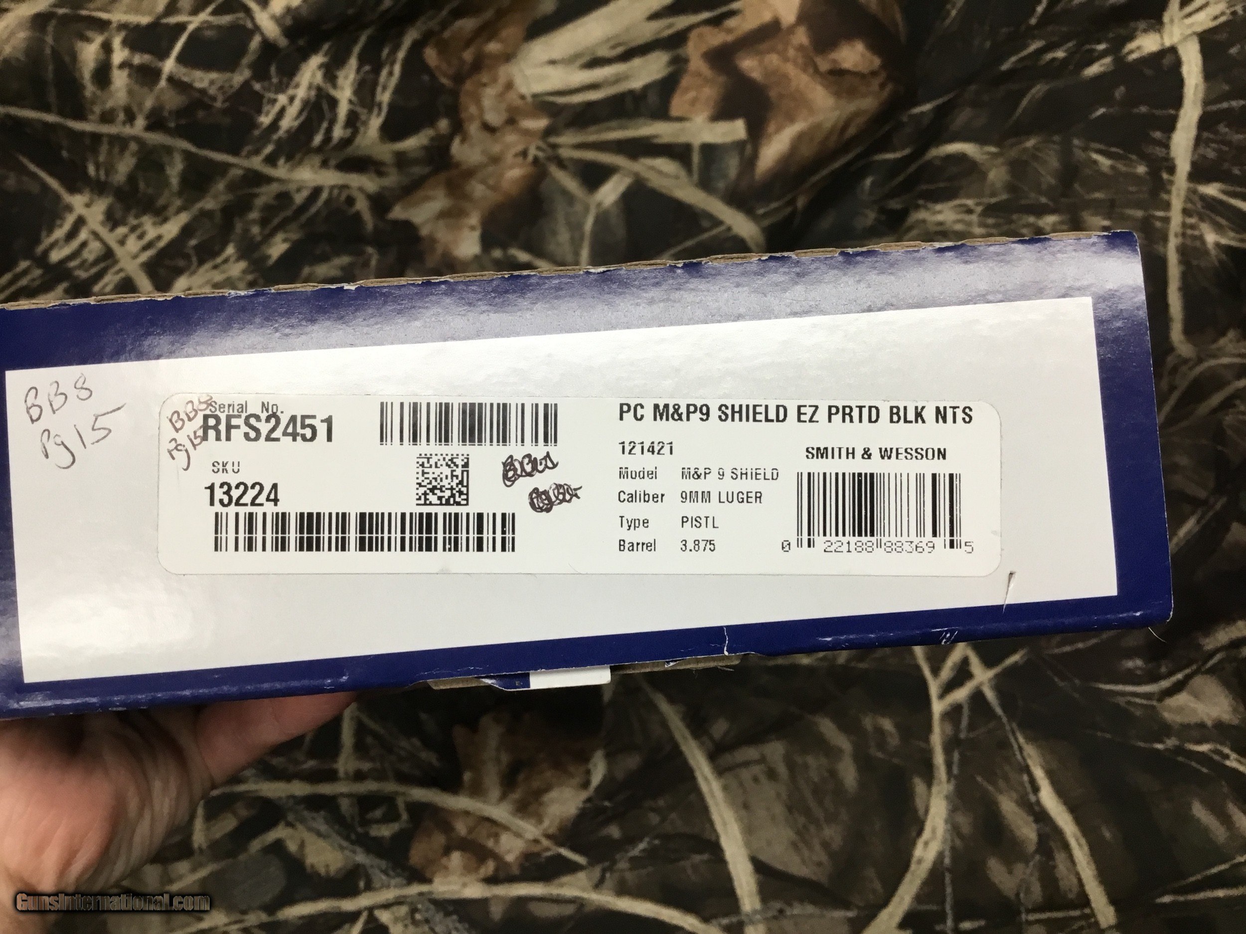 Description: Smith & Wesson M&P9 Shield EZ Black Ported Grip Safety LIKE NEW IN THE BOX. 2 mags.......Cleaning Kit $449.00 $26.00 TO SHIP If you are WEST of the Mississippi shipping will be $10.00 extra Thank you for looking at our items. If it is listed on the site, we still have it in the shop. If you wish to buy, hit buy it now and call the shop to pay. We are open Monday thru Friday 10:00am-5:00pm EST ...........Ask for Bree....... (803) 874-1060. Please CALL the shop first if you are in California. You need to verify you can have this weapon, since we DO NOT accept returns from California. NO INTERNATIONAL SALES. SOLD Handgun Caliber: 9x19mm Parabellum (9mm Luger, 9x19mm NATO) |