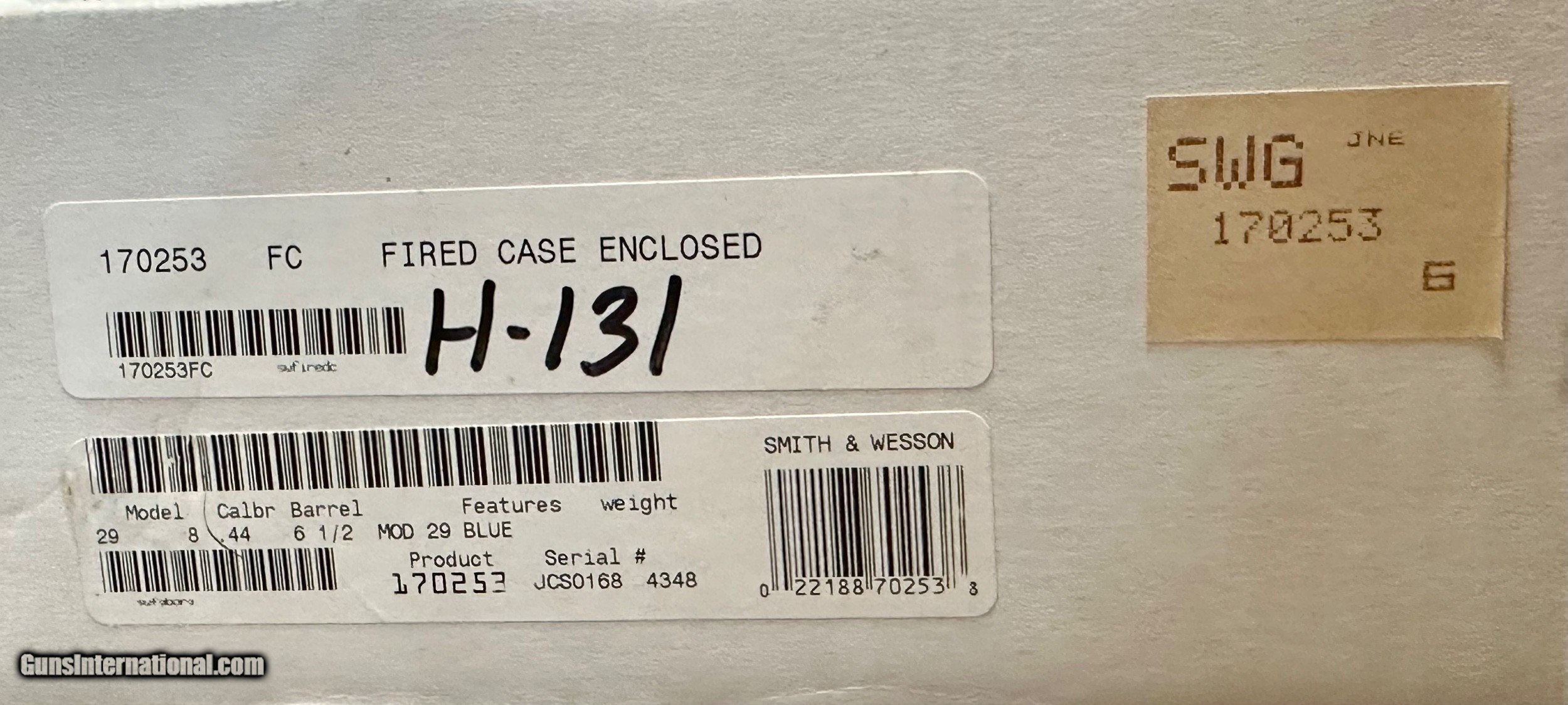 Description: Description serial #JCS0168, 44 Magnum, 6 1/2" barrel with an excellent bore. New in the box never sold over the counter old inventory.The stainless steel acorn shaped target hammer, smooth combat trigger and the barrel mounted scope base filler along with the scope base that can be installed if desired. The checkered hardwood factory grips with silver S&W medallions and laser engraved "S&W" logo surrounded by "American Pride" on the butt are in excellent condition. The revolver features a white outline micro adjustable factory rear sight, interchangeable orange luminescent front sight, over travel stop on the trigger, ball detent on the front of the crane, four screw frame, drilled and tapped for Weaver style scope base (Base is included), and unfluted cylinder to name some of the obvious. Included is a factory soft case, stainless steel Weaver style scope mount with an Allen wrench, factory Call gold bead front sight, cable lock with a pair of keys, manual and paperwork.The revolver appears to be unfired and retains the original hang tag. The production of this revolver was limited to 200 units acording to Amoskeg of a diffrent serial # version they sold. Flat 45.00 Shipping Price reflects a 3.5% Cash discount Maine residents add 5.5% Sales Tax SOLD Handgun Caliber: .44 Remington Magnum Manufacturer: Smith & Wesson Model: 29 American Pride Performance Center Serial Number: JCS0168 Barrel Length: 6-1/2 Condition: New in Box Metal Condition: New in Box Wood Condition: New in Box Bore Condition: New in Box Action: Double action revolver Finish: Blued Manufacture Date: Estimate 2006 Extras: Performance Center Item Location: Buxton Maine |