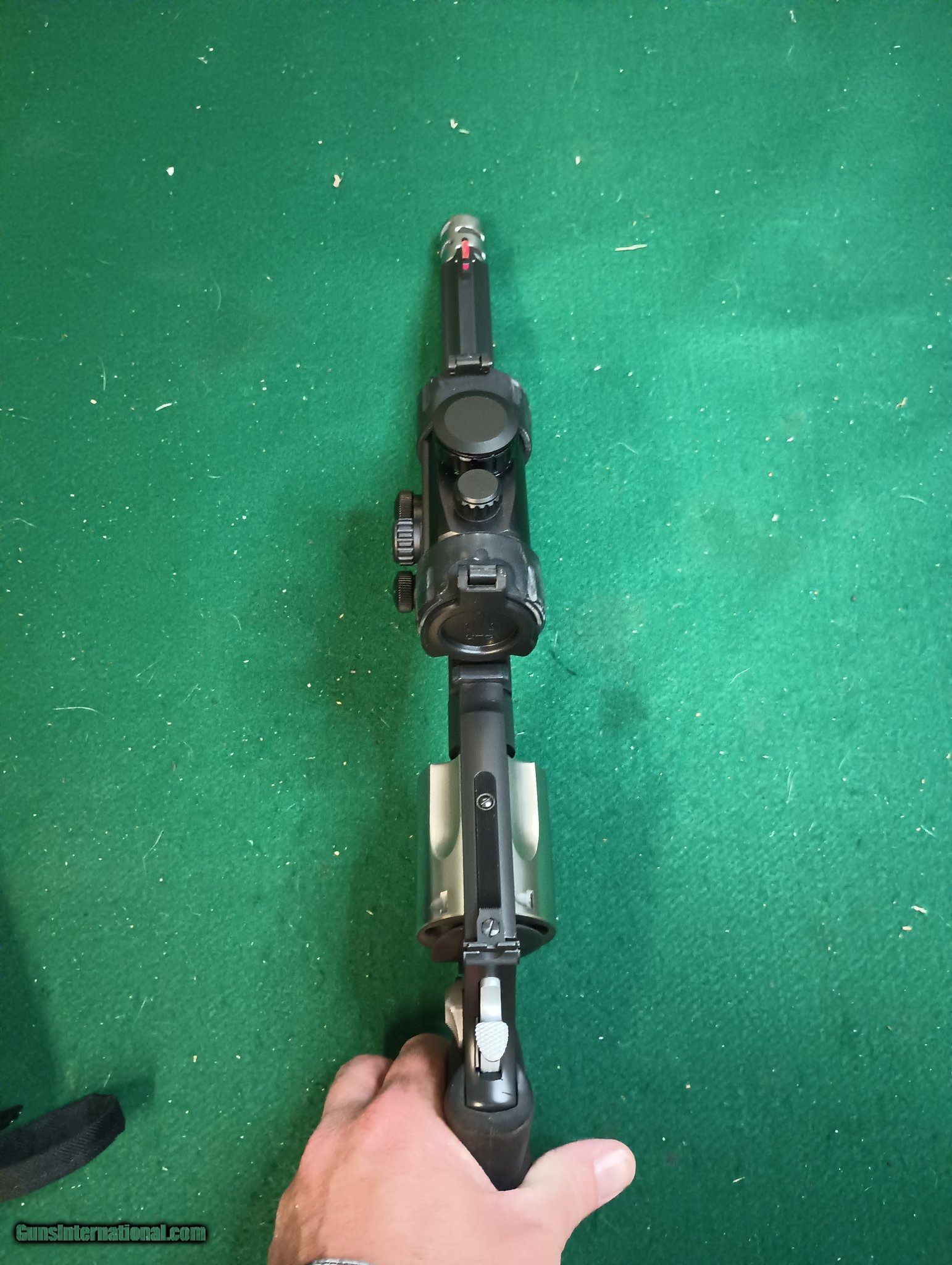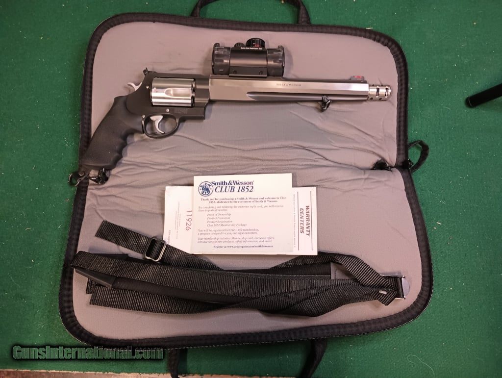 Description: Guns Listing ID: 1379547 This Performance Center Smith model 500 is chambered in .500 S&W Magnum. It has a 10.5\" barrel with a muzzle brake and picatinny rail machined into the top of the barrel. It is a two tone black and stainless. It‚‚s topped with a UTG Red/Green dot. Capacity is 5 rounds. Comes with a soft case and sling. Gun is in excellent condition SOLD Manufacturer: SMITH & WESSON Model: Performace Center 500 Caliber Info: .500 S&W MAG Condition: Used - Non-Certified Barrels: 10.5 BARREL Finish: BLACK & STAINLESS |
