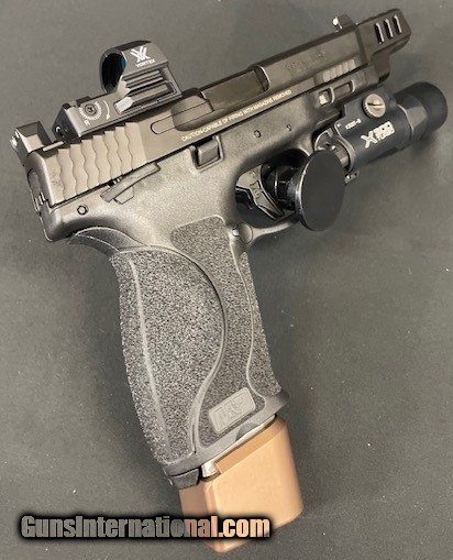 Description: Guns Listing ID: 577674 Comes with case, Vortex Razor Red Dot, Surefire X300, Holster, 2-15rd mags, 2-18rd mags, XS Sights, Extra Recoil springs Smith & Wesson 13915 M&P PC M2.0 Full Size 10mm Auto 15+1 5.60\" Black Armornite Ported Stainless Steel Barrel, Black Armornite Optic Cut/Serrated Stainless Steel Slide & Polymer Frame w/Picatinny Rail Whether for hunting, self-defense or the range the M&P 2.0 10mm delivers when you need it most. Features Low barrel bore axis makes the M&P pistol more comfortable to shoot reducing muzzle rise and allowing for faster aim recovery; patented take-down lever and sear deactivation systems allow for disassembly without pulling the trigger; optic cut slide cut; optimal 18-degree grip angle; extended rigid embedded stainless steel chassis to reduce flex and torque when firing and Armornite durable corrosion resistant finish. Includes two magazines and four interchangeable palmswell grip inserts. Brand Smith & Wesson Category Pistols Series M2.0 Model M&P PC Caliber 10mm Auto Barrel Length Range 5\" to 5.99\" Capacity 15+1 Action Striker Fire Frame Finish Black Armornite OAL 7.90\" Frame Material Polymer Hand Right Hand Sight Style Adjustable Slide Finish Black Armornite Slide Description Optic Ready / Serrated Barrel Finish Black Armornite Barrel Material Stainless Twist 1:10\" Frame Size Full Size Grips Interchangeable Backstrap Sight Configuration 3-Dot White Height 5.60\" Includes 2 Magazines / 4 Palmswell Grip Inserts Safety Thumb Width 1.30\" Barrel Description Ported Barrel Length 5.60\" Max Capacity 15 Trigger Flat Face Weight 31.40 oz Frame Description Polymer Frame w / Picatinny Rail Manufacturer: SMITH & WESSON Model: PERFORMANCE CENTER M&P10 M2.0 Caliber Info: 10MM Condition: Used - Non-Certified Barrels: 5.6" BARREL Action: STRIKER FIRED Finish: BLACK Weight: 1.96 LBS. Price: $1,273.99 Contact Seller |