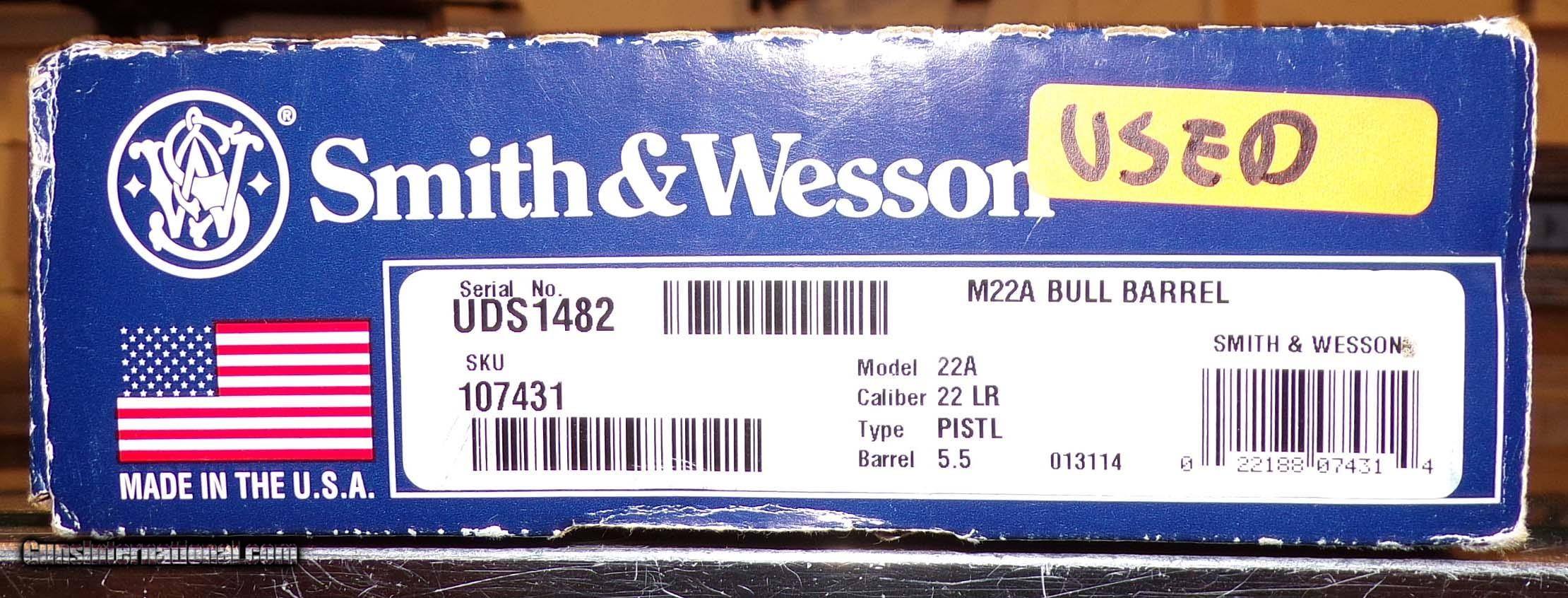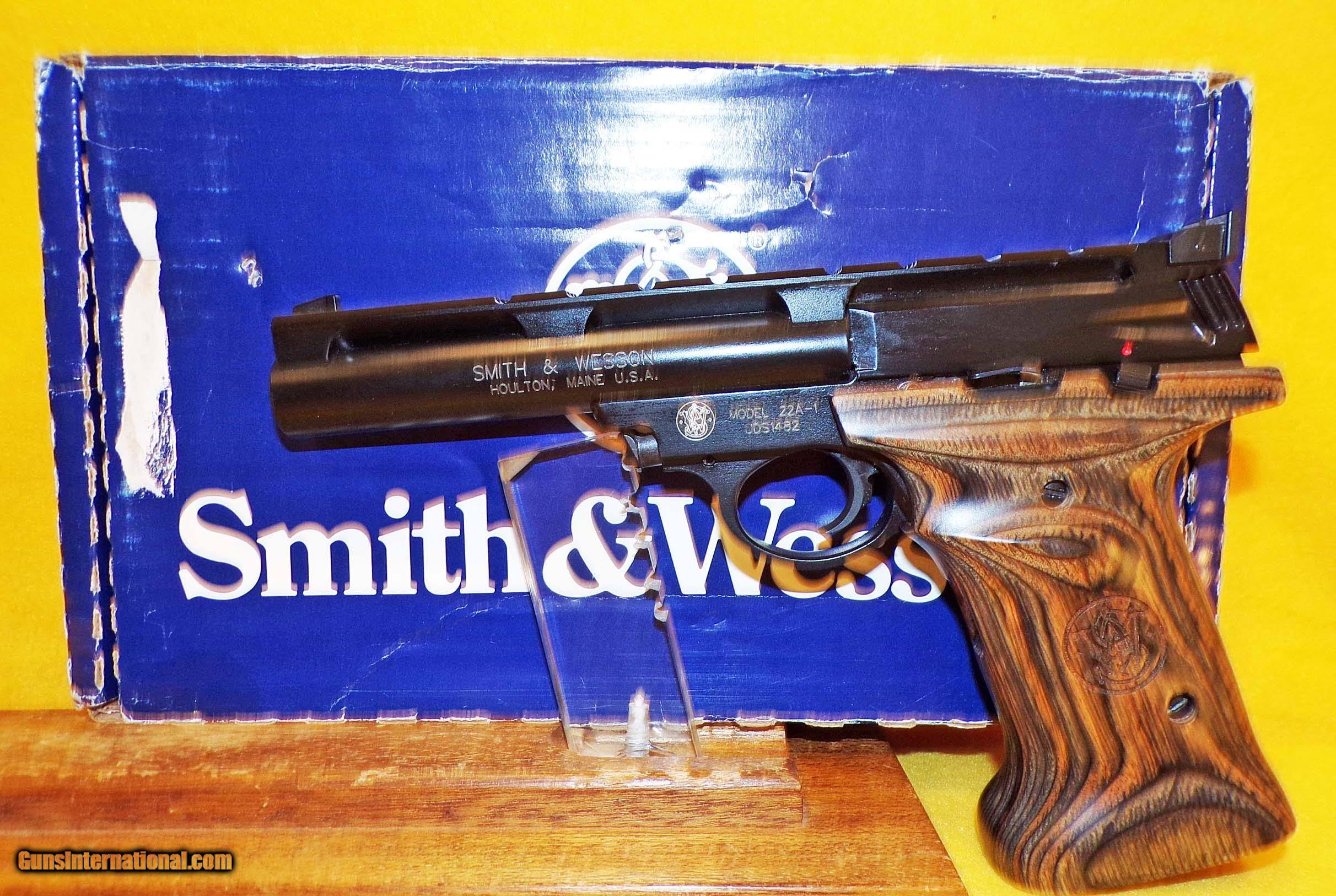 Description: S&W 22A1 IN .22 L.R. CAL., WITH 5 1/2" BARREL. COLOR BLACK. CONDITION 95%+. SERIAL NUMBER UDS14. S&W MODEL 22A1 IN .22 L.R. CALIBER, BRIGHT SHINY BORE, TARGET GRIPS EXCELLENT, COMES WITH ONE FACTORY MAGAZINE AND BOX, 95%+ OVERALL CONDITION, OUR STOCK # D1934 SOLD |