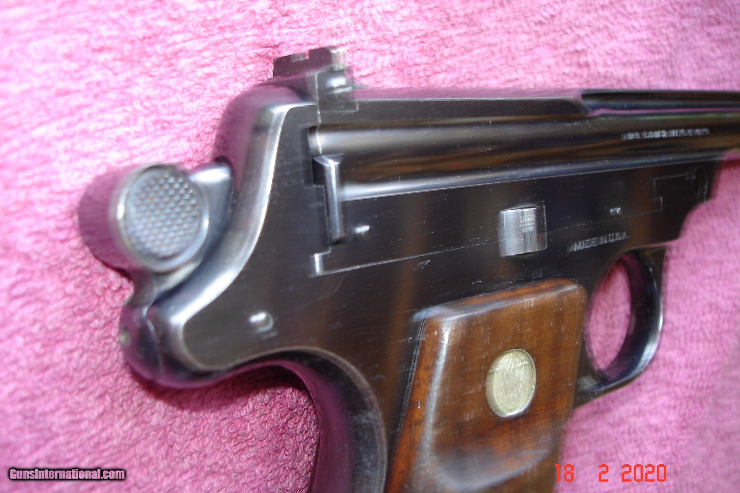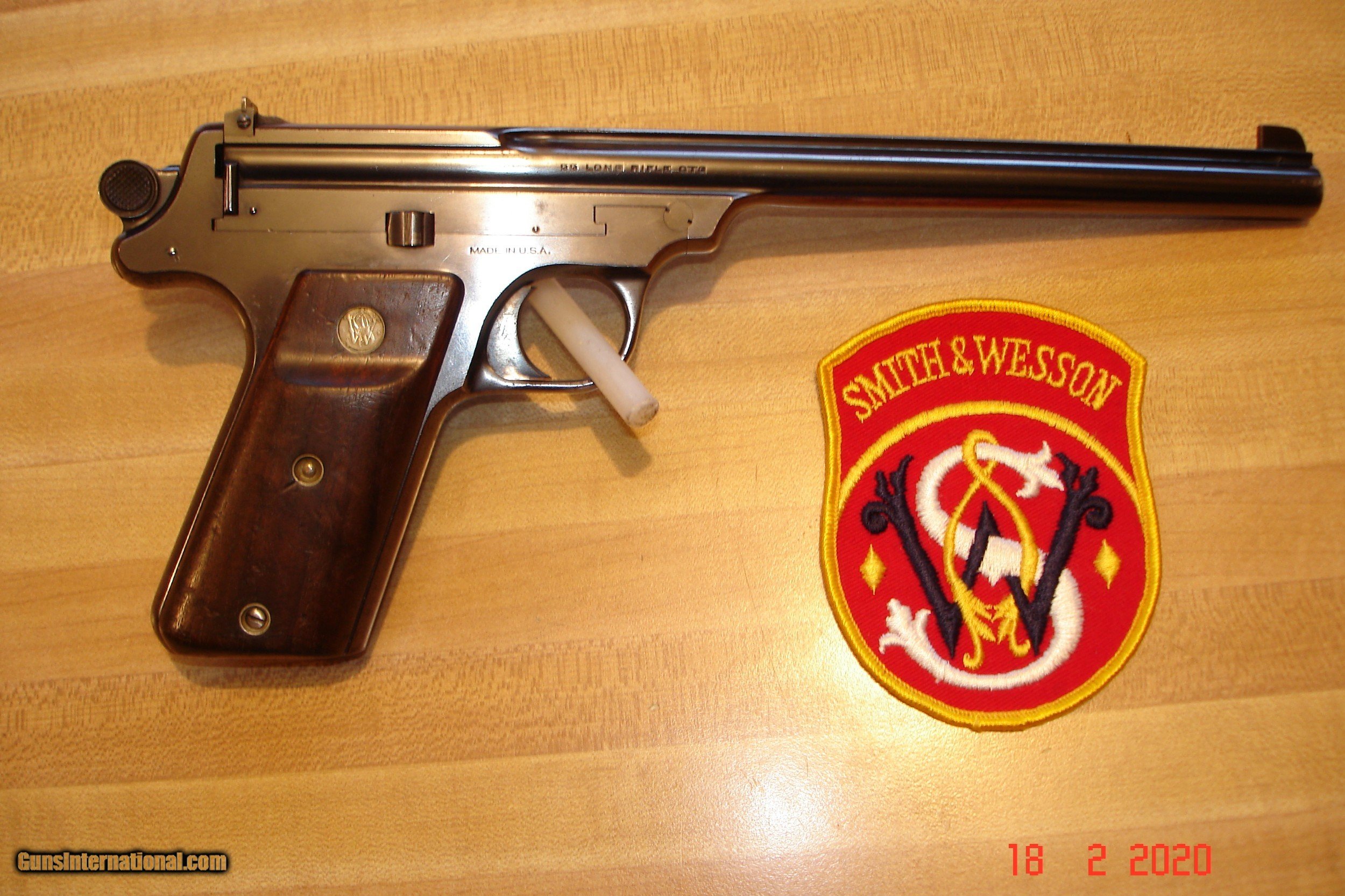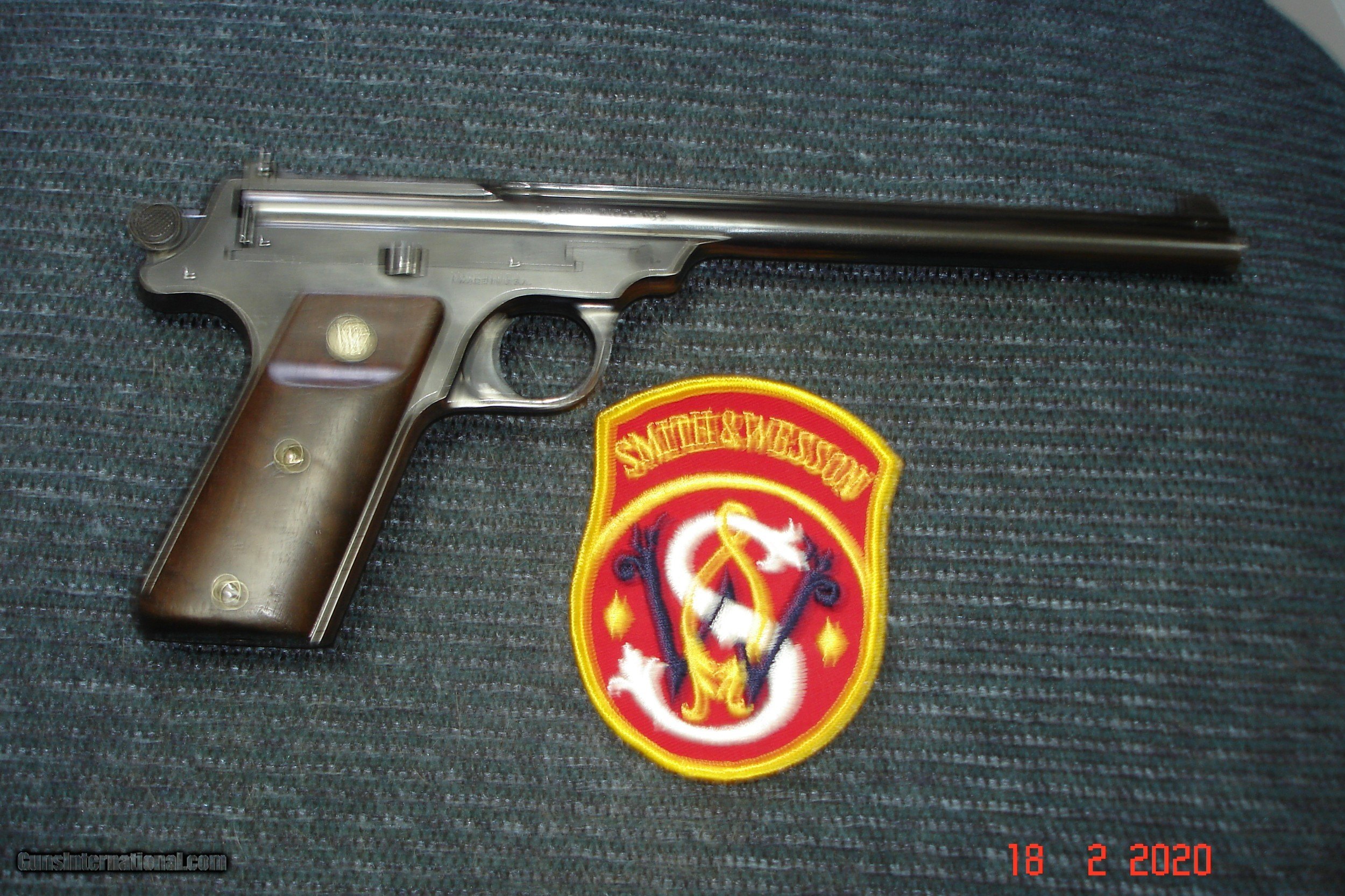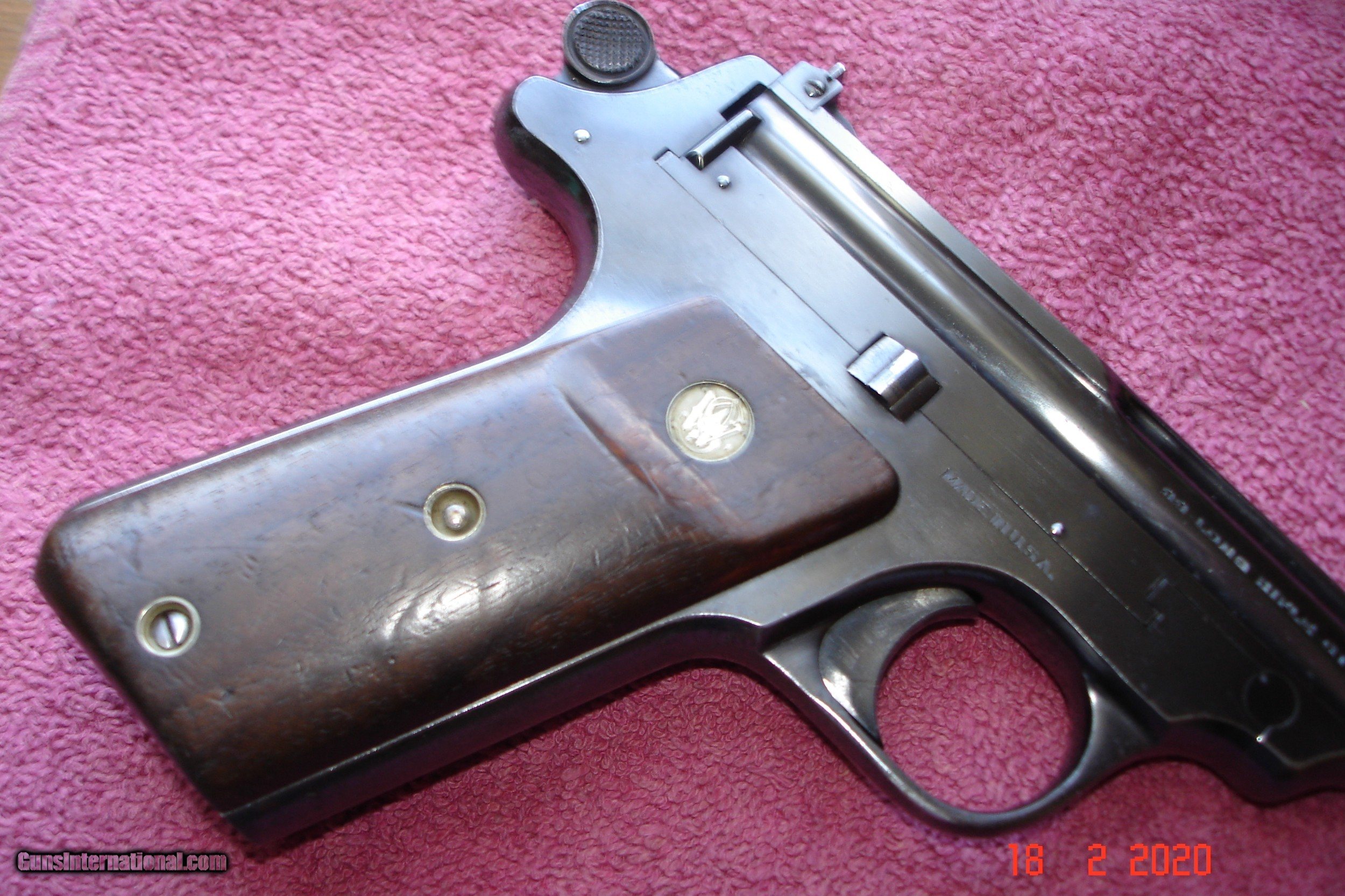 Description: Out of my collection I have for sale a Hard to find, Rare Smith & Wesson Straight Line Target Single Shot Pistol. Side Swing 10" Barrel. 4th. Model MFG 1927? .22Lr. Caliber. 10" BBl. with a mirror bore and tight lock up. Excellent Over All Original Condition Blue is Very good 95-96% a little freckling on the grips and butt. Smooth Walnut Stocks with silver medallions. Over all good condition. Adjustable rear sight with a patridge front sight. Weight is 35.6oz. What a Neat seldum seen Smith & Wesson Pre-war Target pistol. There were only 1870 of these ever made. I am slowly selling off my collection, this is a duplicate in my collection. SER#.867 Shoots Great ! I use only Standard Vel. Ctgs. Great Price $1899.00 Shipping and Ins. $35.00 to your FFL C&R is also fine. Ask about our Free Layaway,s! SOLD Curio/Relic: Yes |