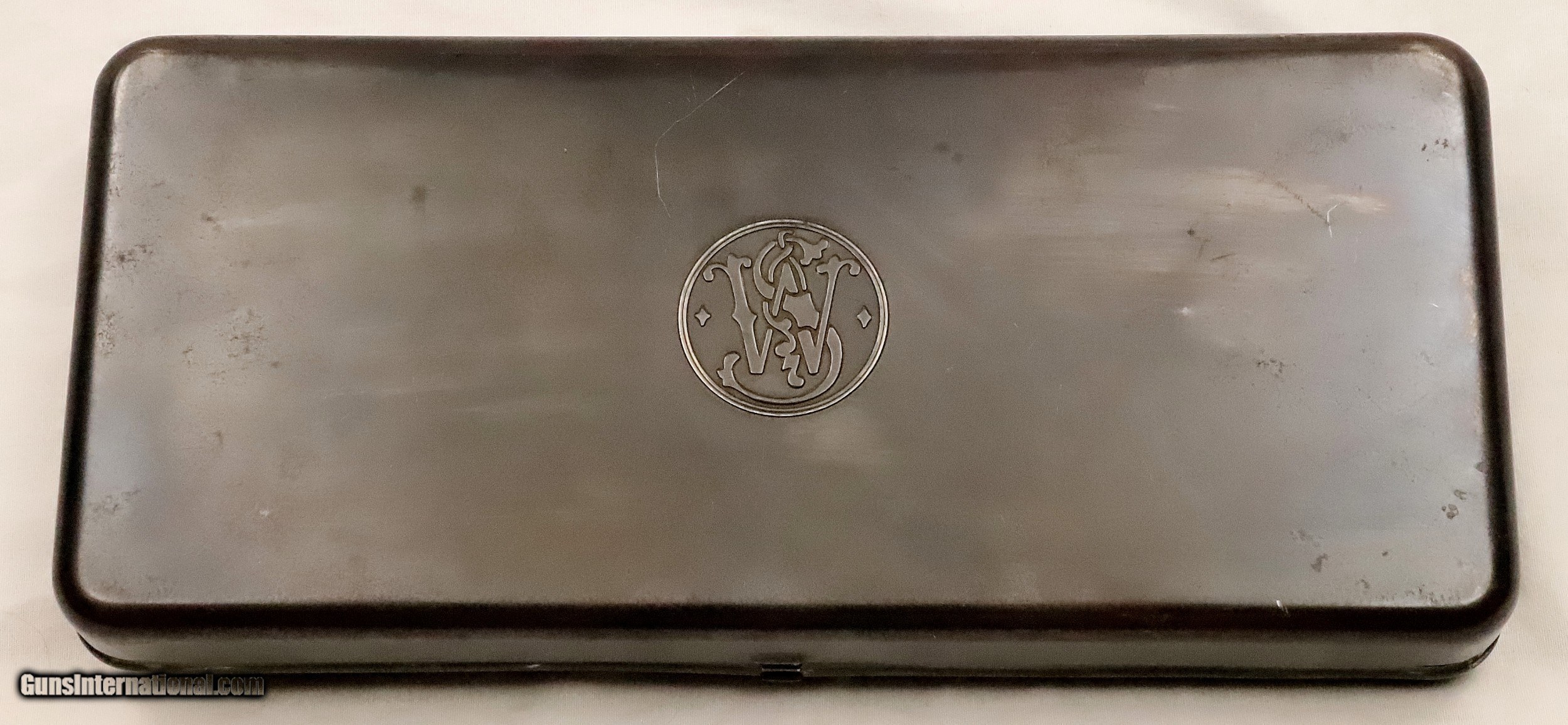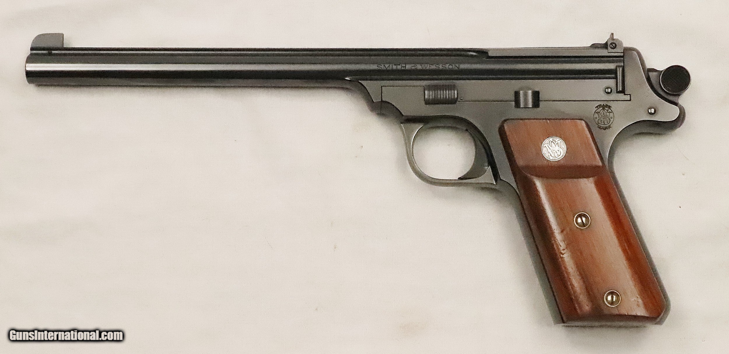 Description: Price Reduced...............This Single Shot Target Pistol was Mfg’d. by Smith & Wesson c.1935. It is a Fourth Model, Single Shot Straight Line Target Pistol. This is one of only 1870 made and has survived in un-fired condition. It is .22 Rimfire with a 10” side swing barrel. The bore is perfect and the gun is in excellent un-fired condition. The side swing action is remains very tight. The external finish of both the steel and wood appear as new. The Left grip has a few light dents but not noticeable at arms length. The rare original blued steel box is in excellent condition and contains the original sight adjustment screw driver and original two piece cleaning rod. The low production and high condition make this a fine Investment Grade Firearm. This is a Target pistol that would fill a void in the most discriminating collection. It’s doubtful that a better example could be found. Serial number 1836, Caliber .22 Long Rifle FFL or C&R Required. Beaver Creek Arms TERMS & CONDITIONS Objective: As a collector of 35 years and Licensed Firearms Dealer since 1989 I have a clear definition of a satisfactory transaction. I will be paid as we agreed to, and you will be satisfied with your purchase. My goal is to establish a client list of satisfied repeat customers who will recommend me to other collectors. It’s just that simple. Exiled Saudi princes with secret funds needing change from an over paid purchase need not apply. Notice: ALL Federal, State, & Local firearms laws will be followed. I will take NO shortcuts in the process of a legal sale or transfer, so please don’t ask. SHIPPING: Shipments are made via U.S.P.S. Priority Mail, Insured, with a return receipt. Packing, Shipping and Insurance cost for this handgun is $45.00. Availability: All items are in stock and available for immediate shipment. Please call or email and an Item will be held up to a week with your Name, Address, & Phone Number. Items marked Reserved are being held for awaiting payment or on layaway. If you are interested in a reserved item, please call or E-Mail to be placed on a backup list. FIREARMS: Modern firearms, post 1898, can only be shipped to a Type 01 Federal Firearms License address. Curio-Relic firearms, as defined by the BATF list, can usually be shipped to a Type 03 Collectors License address. Some states have additional restrictions such as CA, CT, DC, IL, MD, NJ and NY. A signed valid FFL license copy either mailed or emailed will be required for shipment to only the license address. GUARANTEE: Your complete satisfaction is assured, see objective above. If you are not satisfied, please contact me within 3 days of receipt. Please don’t fire the weapon, safety, function and accuracy are NOT Guaranteed. Any weapon offered by Beaver Creek Arms is never test fired nor is there any representation the gun is functional and safe to fire. These guns are sold for collectors and only represented as used firearms that must be checked by a competent person, observe all the necessary safety precautions prior to attempting to load and fire one of these weapons RETURNS: Returns must be made within 3 days of receipt. They must be received in exactly the same condition with no parts exchanged. If it has been altered, damaged, or fired, a refund will not be made. Packing, shipping and insurance cost will not be refunded. All layaway purchases are returnable for merchandise credit only. PAYMENT: Bank check, Personal check, and Money Orders are preferred. Visa and MasterCard are accepted with a 4% processing fee. For Visa and MasterCard orders please provide the account number, code number, expiration date, name on card, phone number and card billing address. Checks, both Bank and Personal must clear before the order will be shipped, usually a 2 week delay. LAYAWAYS: A 20% deposit is required. Balance is due in 30 days. Deposits are non-refundable and are forfeited after 40 days. Layaway sales are returnable for merchandise credit only. SALES TAX: Pennsylvania state sales tax is 6% for in state purchases. The payment of other states sales tax, if applicable, for shipped items is the buyers responsibility. DISCREET: Client information will remain Confidential. Your privacy is protected. SOLD Curio/Relic: Yes |