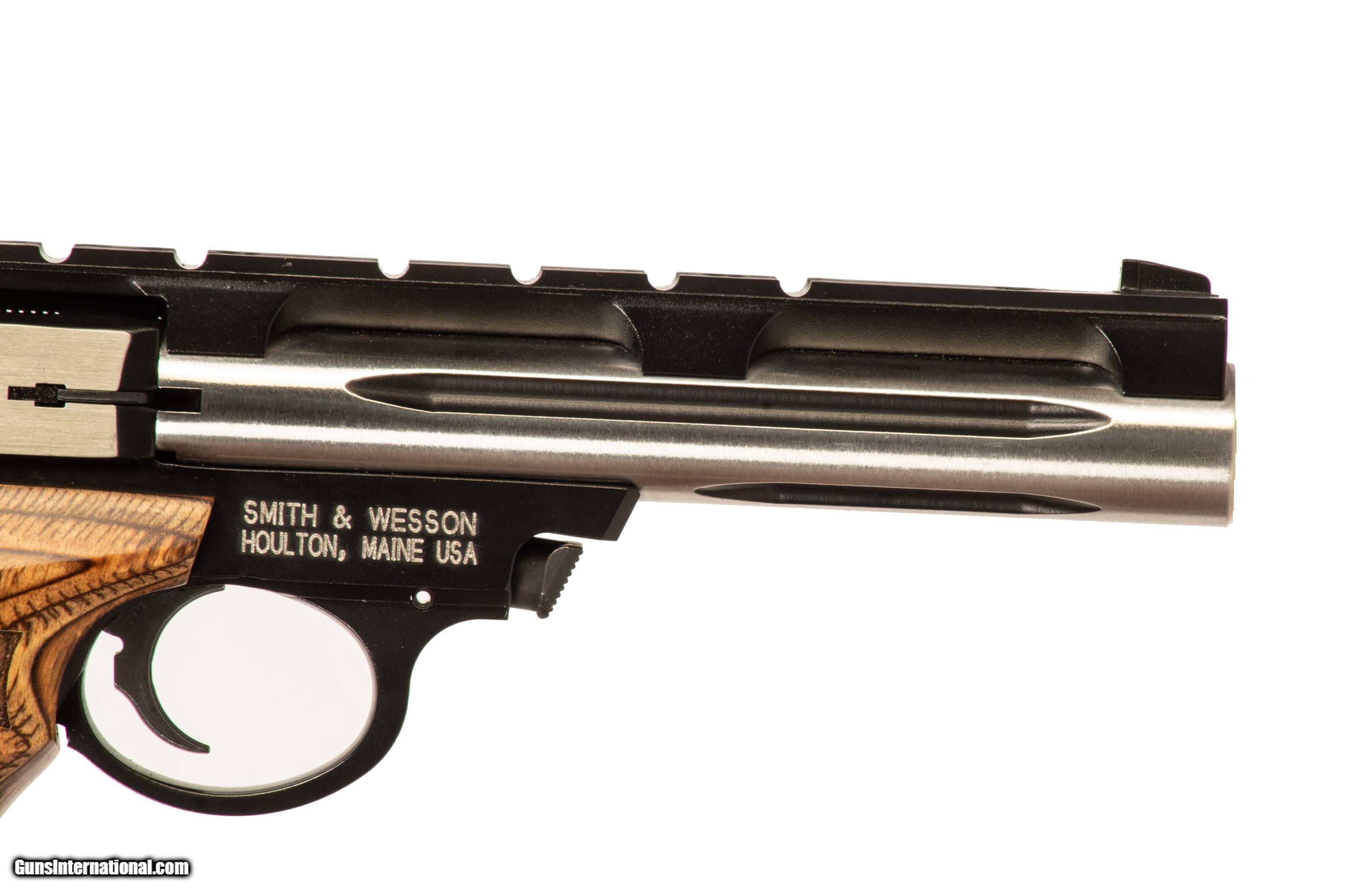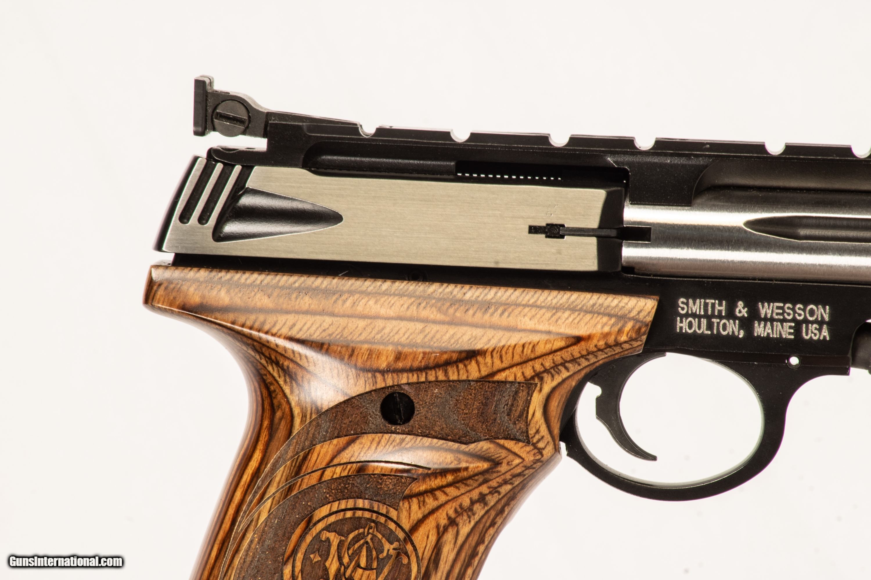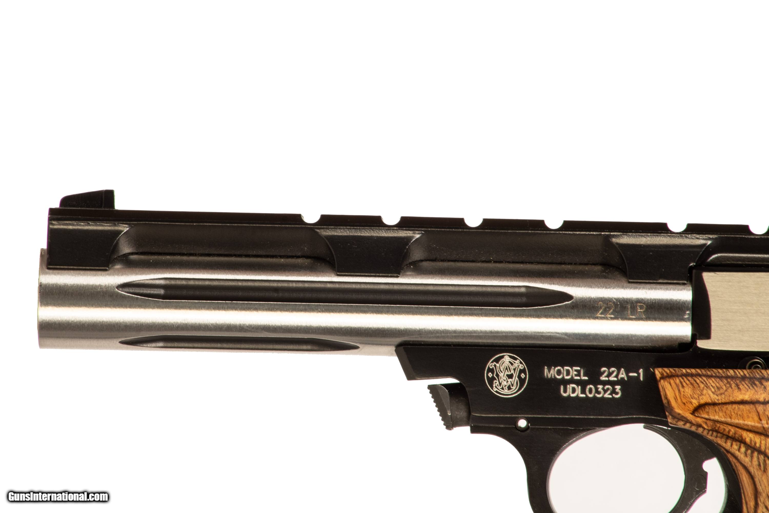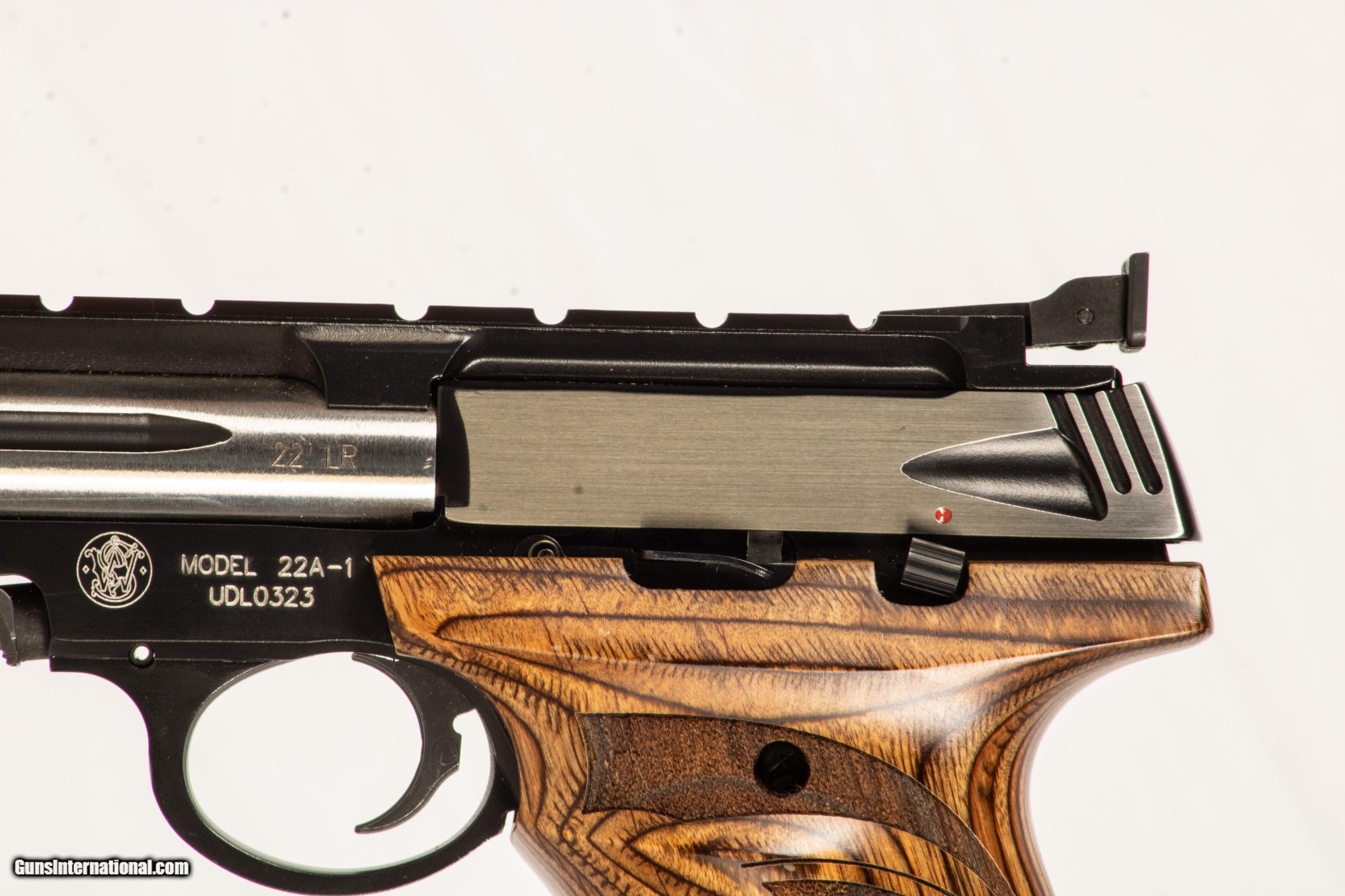 Smith & Wesson 22A-1 chambered in 22 LR with a 5 1/2 inch barrel and a bright & shiny bore. This firearm comes with a box. This firearm is in excellent condition and is covered by Dury's Lifetime Warranty.