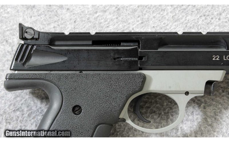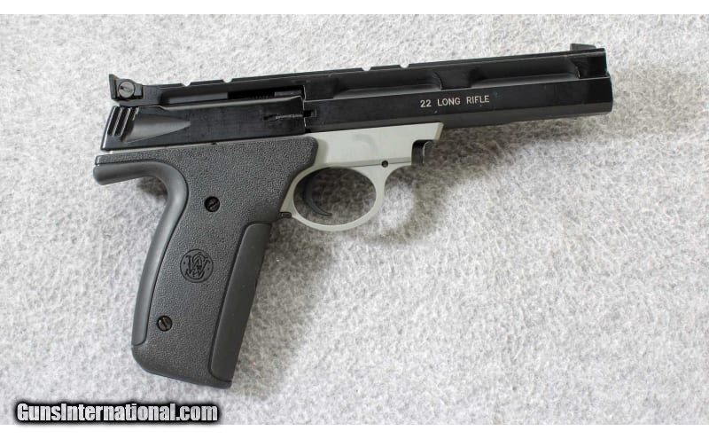 Description: The Smith & Wesson A22 is full size with an aluminum alloy frame with integral optic rail. The magazine release is mounted on the front of the grip frame for ambidextrous utility and the barrel is removable for cleaning with the push of button in front of the trigger guard. .22 Long Rifle SOLD Metal Condition: Excellent Bore Condition: Excellent Barrels: 5.5 inch barrel Triggers: Single action Weight: 36 oz. Sights: Adjustable rear sight with blade front on rib for mounting optic Item Location: Lehi, UT |
