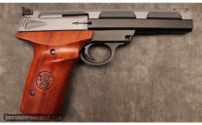 Description: Smith & Wesson's series of rimfire pistols are ideal for competitive target shooting or recreational shooting. Whether a first handgun purchase or a tool to hone shooting skills, these extremely accurate target pistols are perfect for shooters at all skill levels. This one comes in its original box with all of its original accessories. .22 Long Rifle SOLD Wood Condition: Excellent Barrels: 5.5" Barrel Weight: 2.15 lbs. Item Location: Denham Springs, LA |