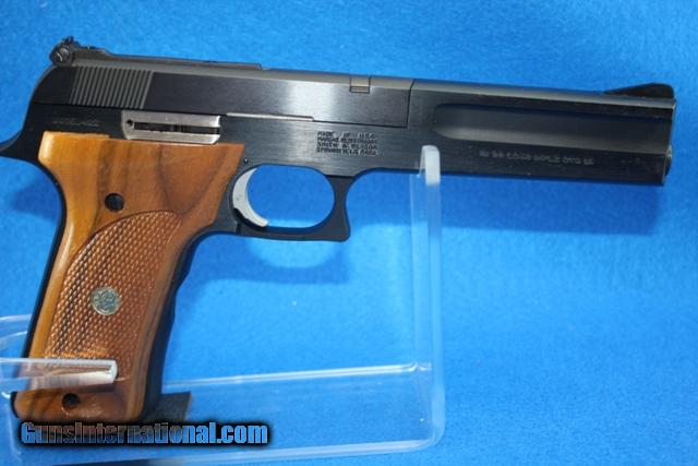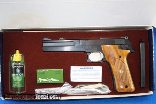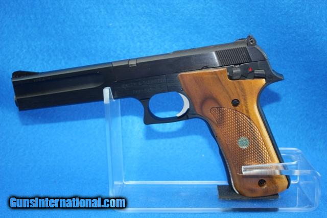 Description: Smith & Wesson 422, 22LR, 6" barrel, aluminium frame with steel slide, adjustable reaer sight, checkered walnut grips, matte blue finish. This firearm is as new in box, please see photo taken when box opened. Immaculate condition. ADD 3% FOR CREDIT CARDS SHIPPING $25.00 SOLD |