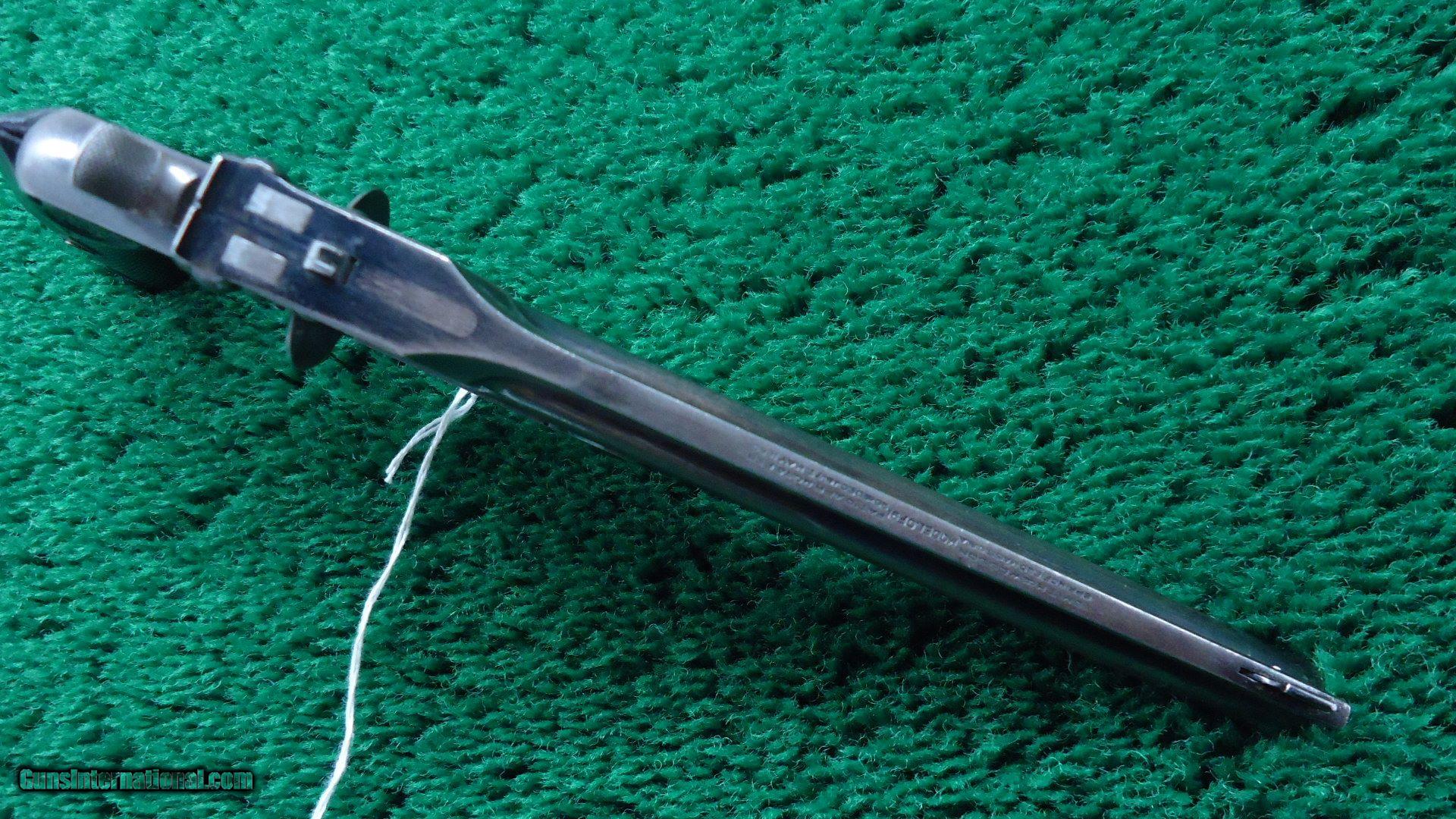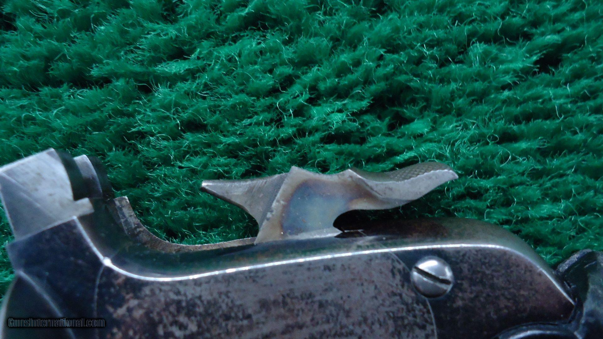 Description: First Model single shot 22 LR Target pistol with the scarce 6 inch ribbed barrel. Original sights. Fine bore. Hard rubber grips in very good condition with just slight wear. Overall gun in near excellent condition with 85-90% original blue thinning in areas. Traces of case color remain on the hammer. Clean sharp gun. Only 862 made in this caliber. Leroy Merz Antique Firearms specializes in antique and vintage Winchesters and other fine American firearms. Since 1965 Mr. Merz has taken part in the world of firearms and has been a contributor to many well known reference books. Just recently we mailed the 127th edition of our privately-published catalog. We have hundreds of additional guns in every price range at our home online. Search for Merz Antiques in google. SOLD Antique: Yes |