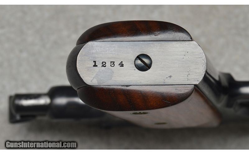 Description: Smith & Wesson Straight Line Single Shot Pistol chambered in .22 Long Rifle is in excellent condition. It features a 10" blued barrel, fixed front and rear sights, straight pull hammer, and smooth walnut grip panels with inlaid S&W medallions. It has small handling marks on the barrel and frame. SN: 1234 .22 Long Rifle SOLD Metal Condition: Excellent condition Wood Condition: Excellent condition Bore Condition: Clean and shiny Barrels: 10 Butt Pad: Walnut grip panels Weight: 2 lb 3 oz Sights: Fixed front and rear sights Item Location: Fort Worth, TX |