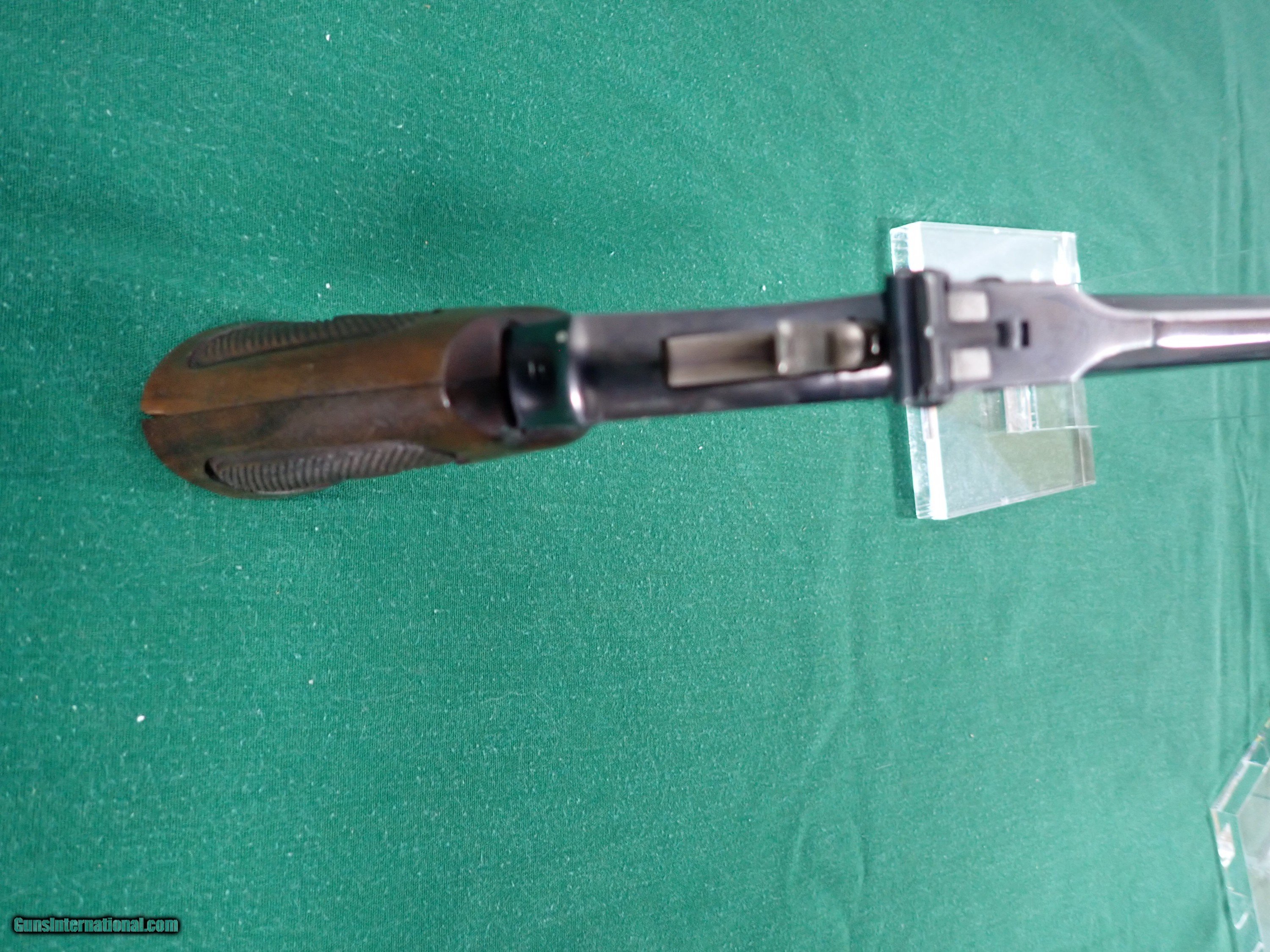 Description: this barrel features scarce olympic barrel with a bright excellent bore.the gun shows light thinning onn the barrel in addition to edge wear. the service style trigger and hammer toning to a soft straw color the grips rate very good with no cracks it has a few dings on the bottom of the grips.It has marble paine style bead front sight adjustable rear sight. this is a fun accurate gun to shoot. buyer to pay shipping and ins. SOLD Curio/Relic: Yes |