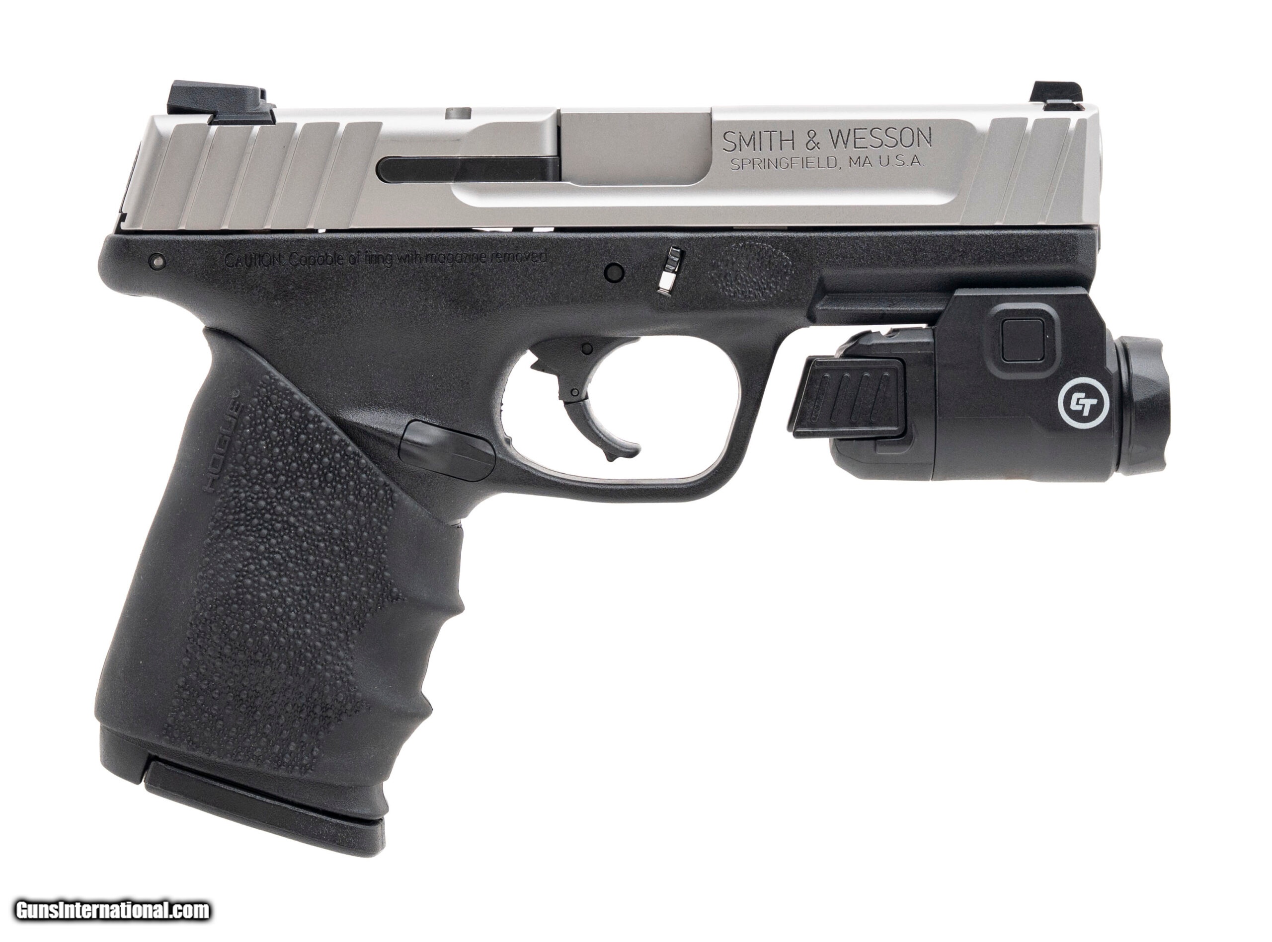Description: "SN: FBY4159. Modern production, .40 S&W with a 4"" barrel. Bore is bright with strong rifling. Compact striker fired pistol with a Crimson Trace flashlight. Overall condition is excellent. Comes with box, Hogue grip, and extra magazine. SOLD |