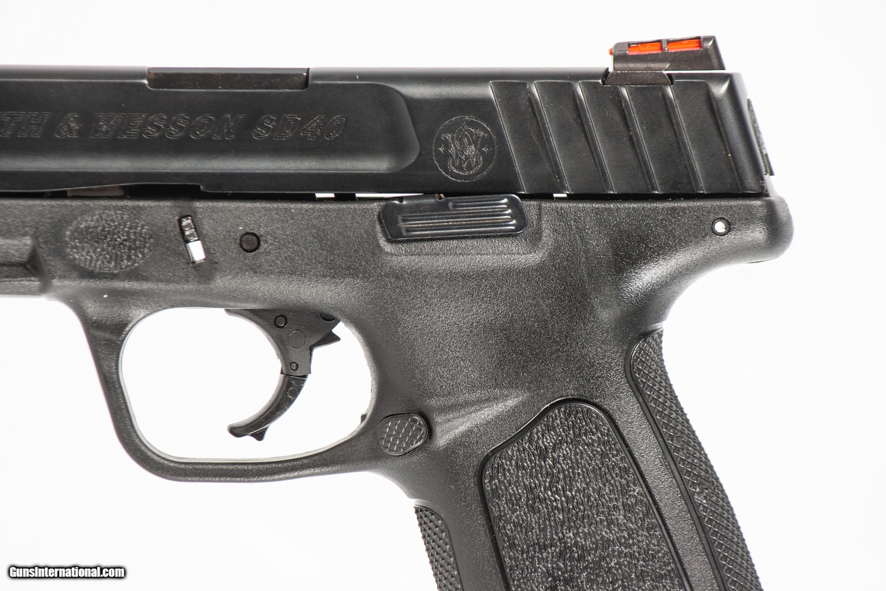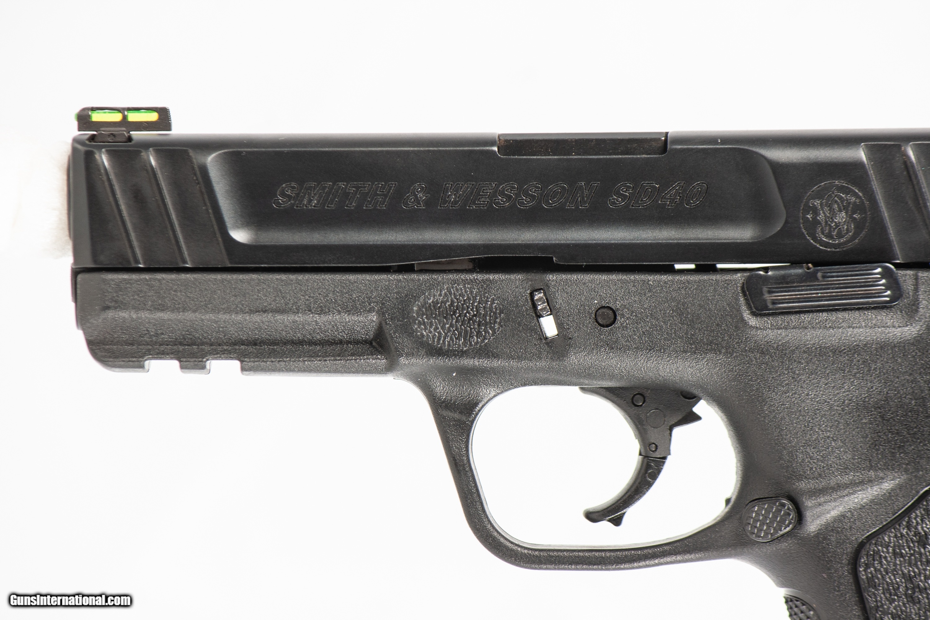 Description: Smith & Wesson SD40 chambered in 40 S&W with a 4 inch barrel bright & shiny bore and fiber optic iron sights. This firearm is in excellent condition and is covered by Dury's Lifetime Warranty.