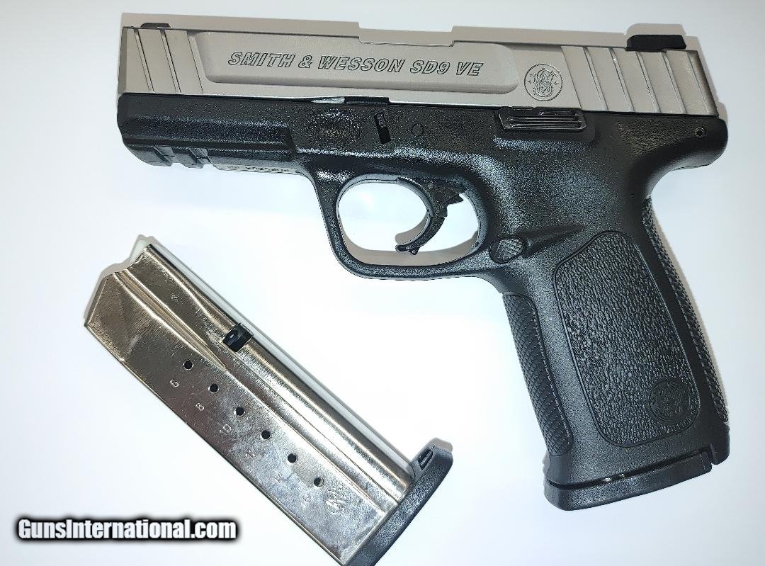 Description: Guns Listing ID: 676738 Smith & Wesson, SD9VE, Striker Fired, Semi-automatic, Polymer Frame Pistol, Full Size, 9MM, 4\" Barrel, Matte Finish, Silver, 3 Dot Sights, 10 Rounds, 2 Magazines SOLD Manufacturer: SMITH & WESSON Model: S&W SD9 VE™ Caliber Info: 9 MM Condition: Used - Non-Certified Barrels: 4 BARREL Finish: STAINLESS AND BLACK |