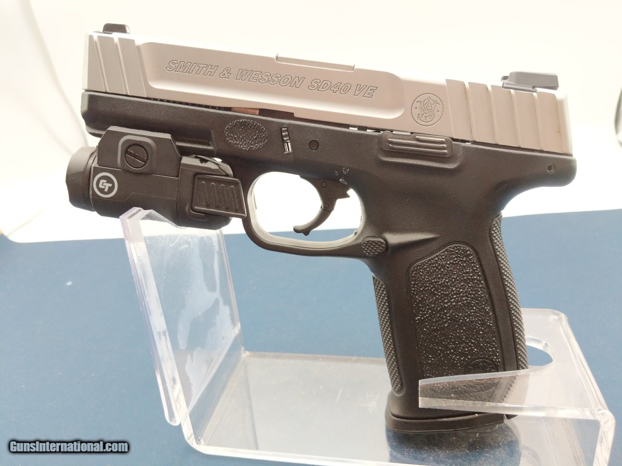 Description: Guns Listing ID: 534769 Great condition Smith & Wesson SD40! Perfect affordable carry pistol with Crimson Trace flashlight and one 13rd magazine. Nice addition to any collection. SOLD Manufacturer: SMITH & WESSON Model: SD40 Caliber Info: .40 S&W Condition: Used - Non-Certified Barrels: 4 BARREL Action: SEMI AUTOMATIC Finish: black & stainless |