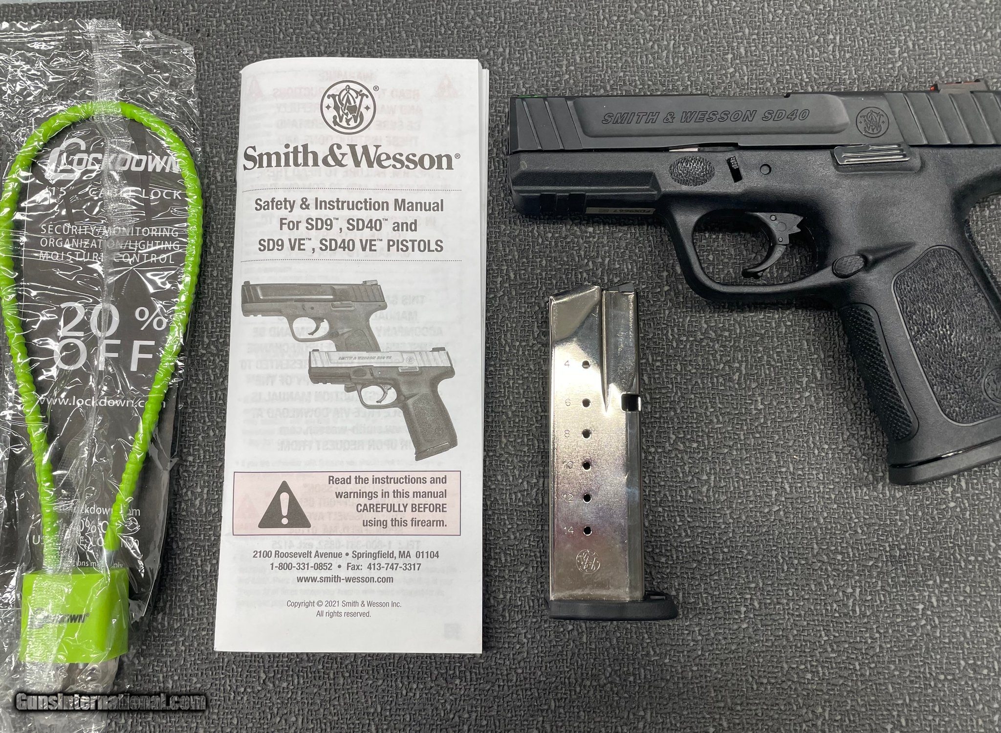 Description: Guns Listing ID: 520461 Used Smith & Wesson SD40 .40 S&W it does have some scratches and scuffs on it. Includes box, instruction manual, lock and extra mag. SOLD Manufacturer: SMITH & WESSON Model: SD40 Caliber Info: .40 S&W Condition: Used - Non-Certified Barrels: 4 Action: SEMI AUTOMATIC |