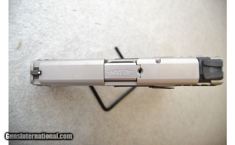 Description: It almost appears as though this pistol has been dropped at least once. The right side of the slide has mild finish damage to the front and rear slide serrations. There is a tiny hairline crack at the bottom right rear of the slide (see pictures). The recoil spring well looks like it has been gouged out a bit. Front of the slide looks like someone took a belt grinder to it. Bore is excellent. .40 S&W SOLD Chambers: Semi-automatic fed from detachable magazines. Metal Condition: Poor to fair. Wood Condition: Frame is in fair condition. Bore Condition: Excellent. Barrels: 4" Stainless steel. Triggers: Matte black polymer with integrated safety. Fore End: 2-Slot rail section. Weight: 1.5 lbs Sights: Fixed 3-dot sights; blade front and notch rear. Item Location: Green Bay |